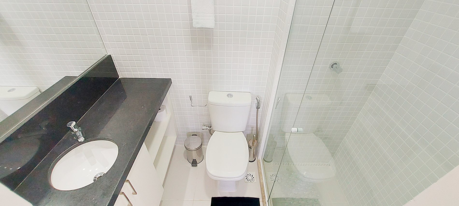 • Nenhum resíduo sólido pode ser descarregado no vaso sanitário (incluindo papel higiênico), pedimos que use a lixeira fornecida. Caso contrário, o vaso sanitário pode entupir e cobramos R$ 150 para desentupi-lo.