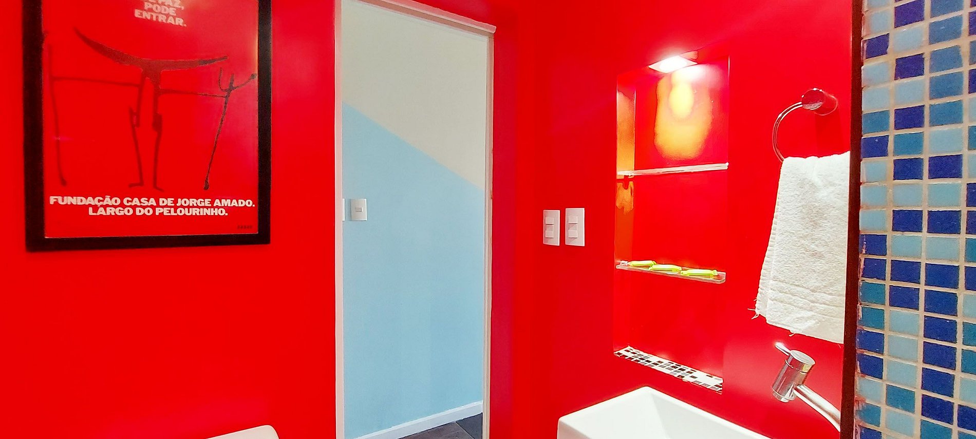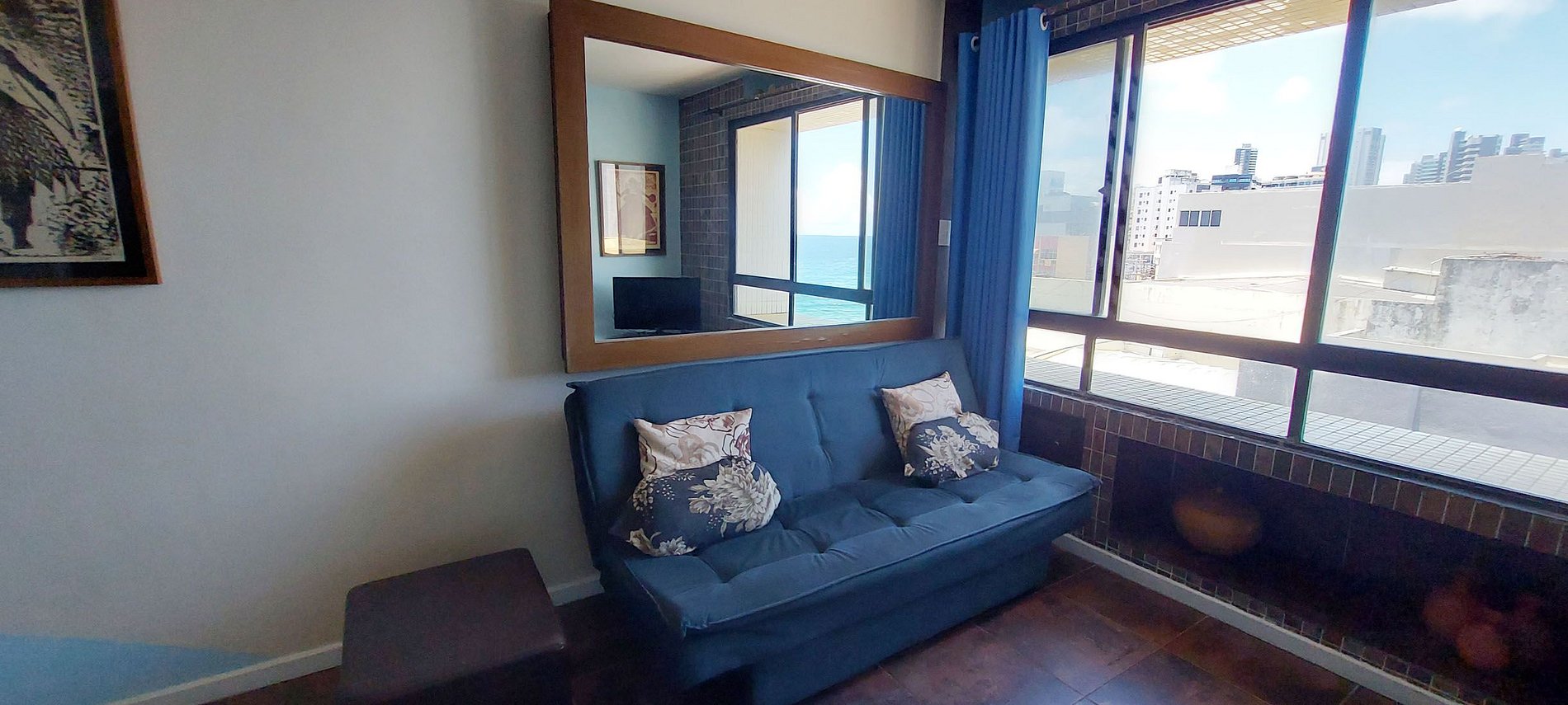 Lindo apartamento artístico em frente à praia no Farol Barra Flat no circuito do Carnaval, com piscina e restaurante na cobertura, a 500m do Farol da Barra. Bairro boêmio e agitado muito procurado pela diversidade de opções turísticas e eventos. Perto de tudo! Dá para ir andando ao shopping Barra, à praia do Porto da Barra, restaurantes e serviços diversos.