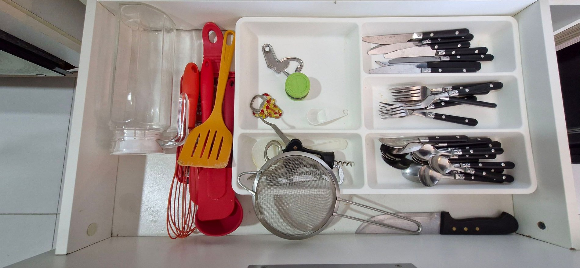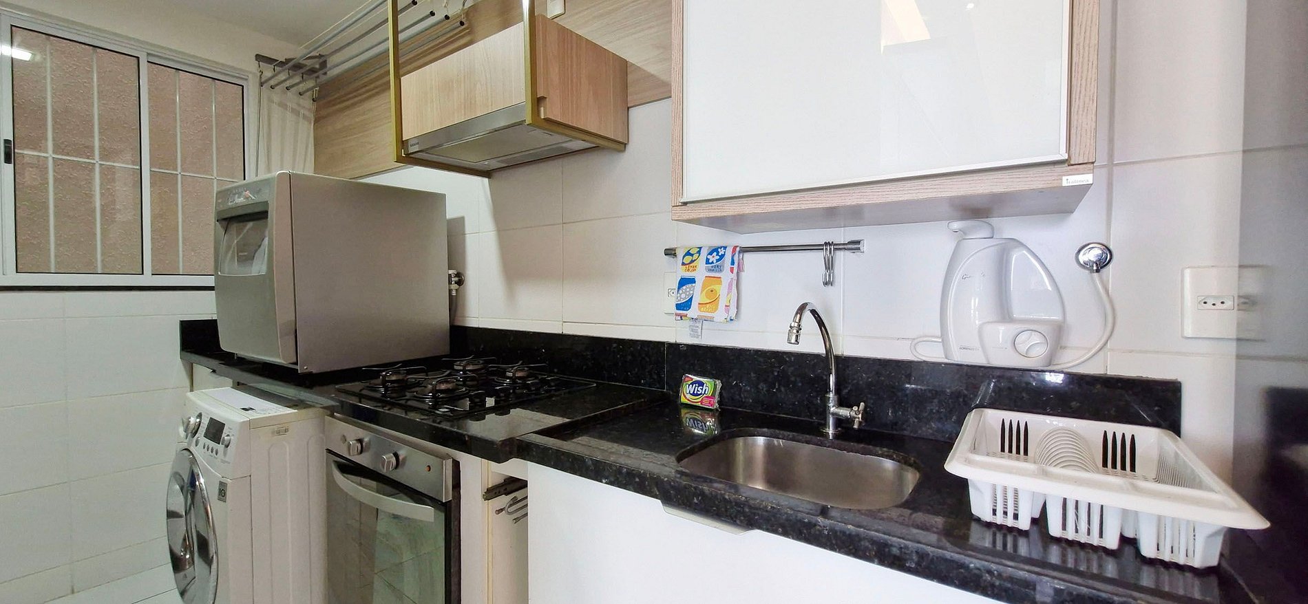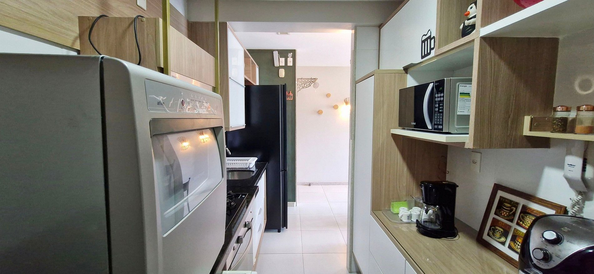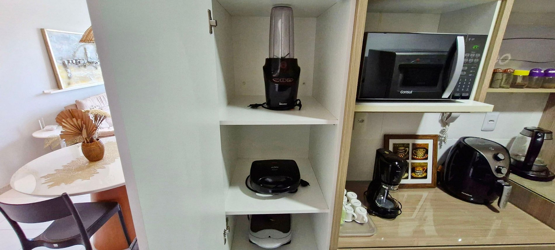 - Cozinha com fogão cooktop 4 bocas, forno elétrico, geladeira duplex inverter, microondas, depurador de ar, filtro de água, lavadora de pratos, liquidificador, airfryer, sanduicheira, cafeteira elétrica, copos, taças, panelas e acessórios de cozinha.