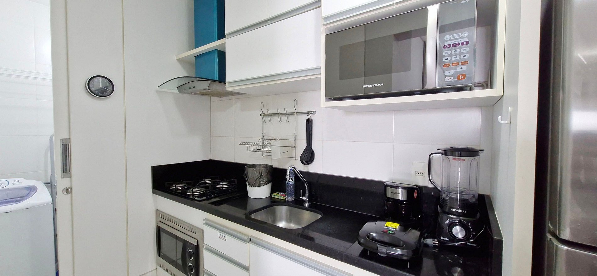 COZINHA - geladeira duplex, microondas, liquidificador, sanduicheira, cafeteira, cooktop 4 bocas, forno elétrico, garrafa térmica, filtro de água