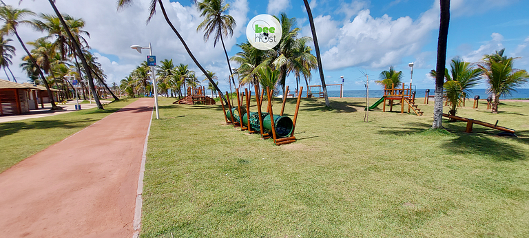 Condomínio residencial com piscina e garagem particular. Tem um portão de saída virado para a praça de Stella Maris em frente a praia. Não tem elevador.