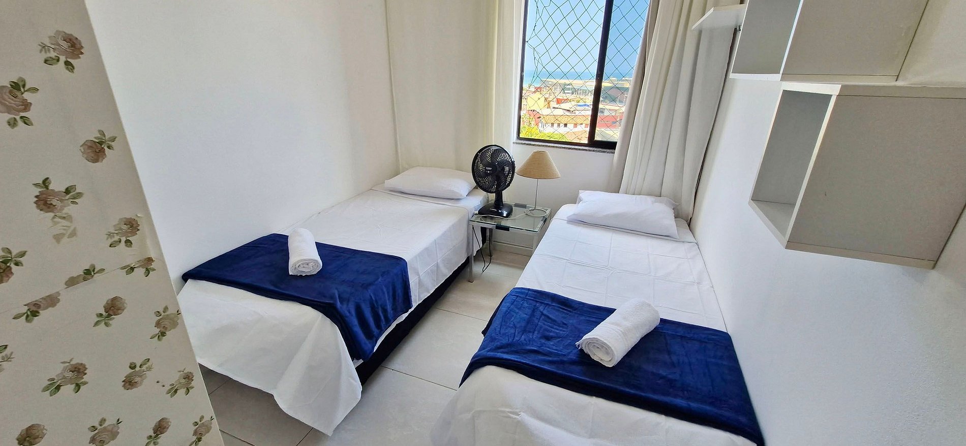 Apartamento perto da praia e do Centro de Convenções. Com 2/4 (1 suíte com cama de casal e um quarto com duas camas de solteiro), sala com TV (Apenas canais locais, não funciona Netflix), WI-FI, varanda, 1 banheiro social, cozinha, máquina de lavar.