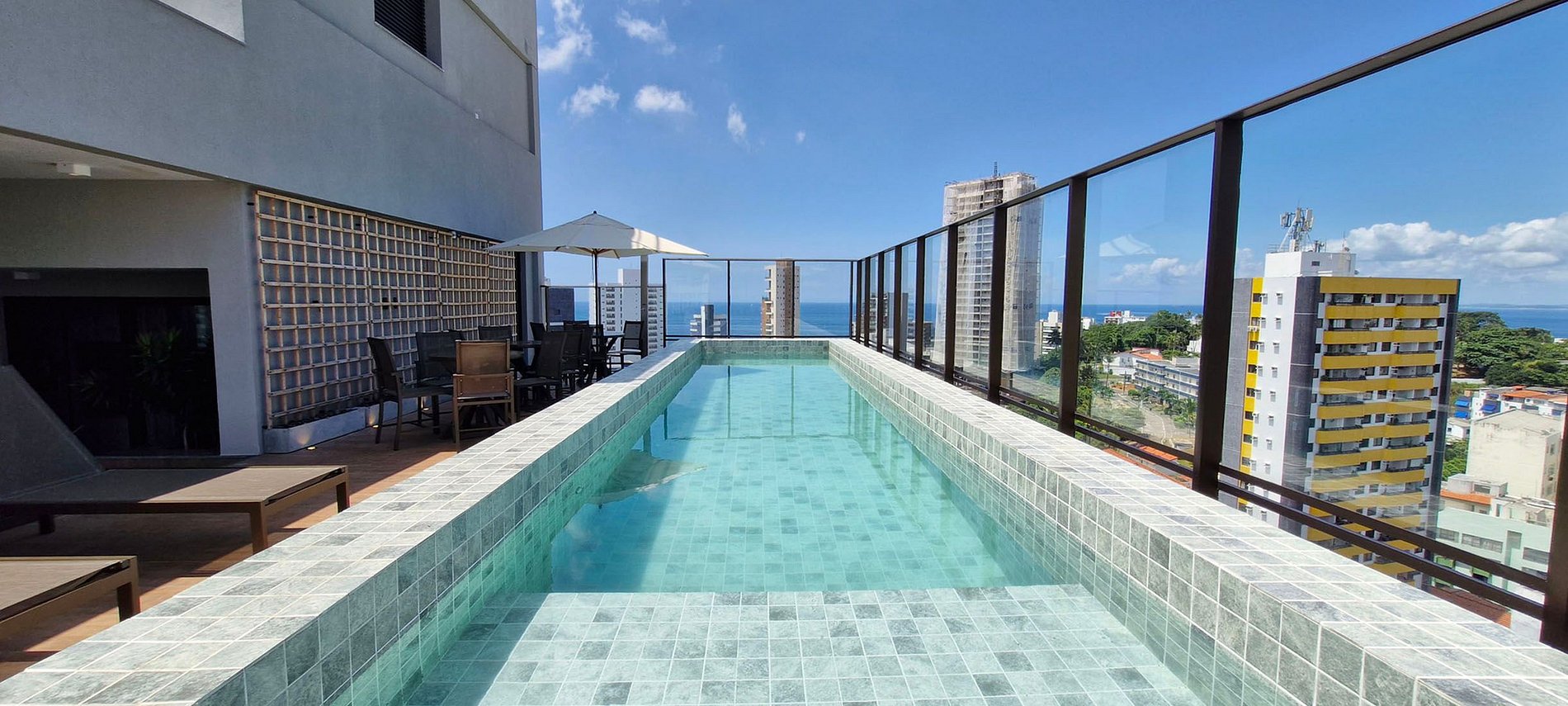 Prédio novo com vista mar da cobertura na Barra! Pertinho do circuito do Carnaval Barra-Ondina! Com piscina, academia, sala de co-working, garagem rotativa e recepção 24hs. Minimarket e lavanderia (cobrança direto no app). Super bem localizado. Uma experiência inesquecível!