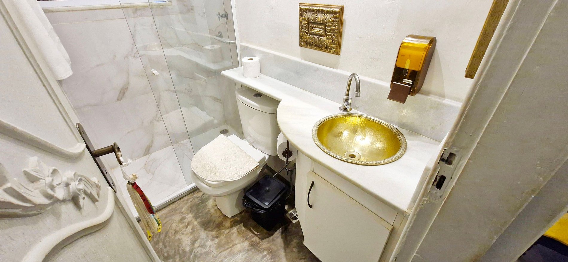 • Nenhum resíduo sólido pode ser descarregado no vaso sanitário (incluindo papel higiênico), pedimos que use a lixeira fornecida. Caso contrário, o vaso sanitário pode entupir e cobramos R$ 150 para desentupi-lo.
