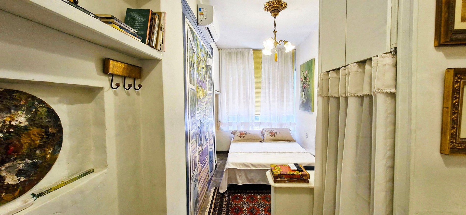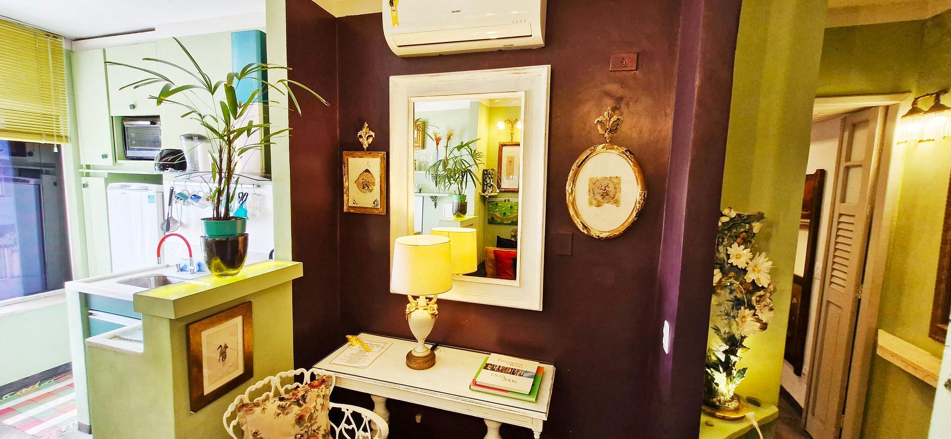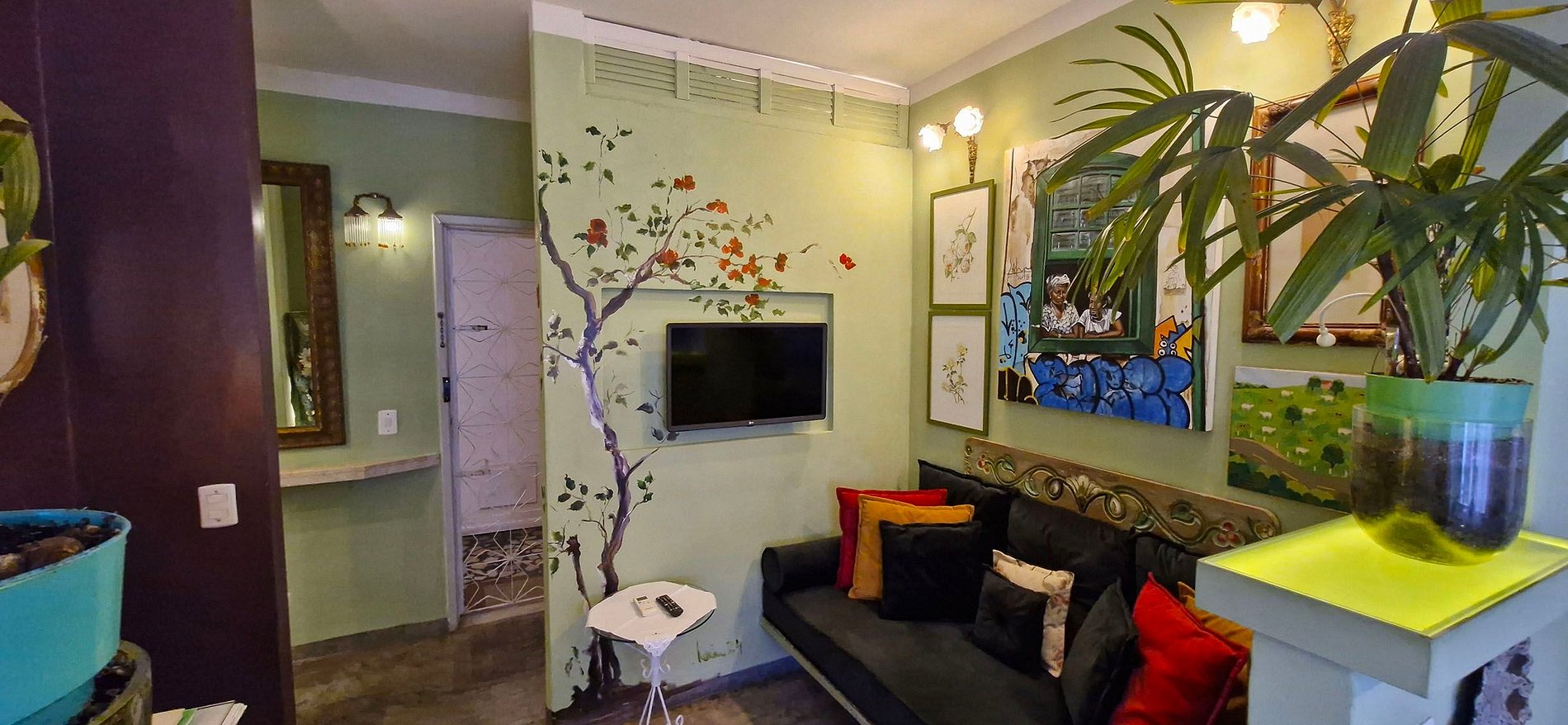 Apartamento com decoração artística em prédio famoso no Centro Histórico com vista para o Elevador Lacerda e Baía de Todos os Santos. Ao atravessar a rua você está na Praça da Sé. Você pode ir andando pra o Pelourinho, Mercado Modelo entre outras atrações turísticas de Salvador. Quarto com cama de casal, smart TV e máquina de lavar, sala de estar com smart TV e wi-fi, cozinha e banheiro.