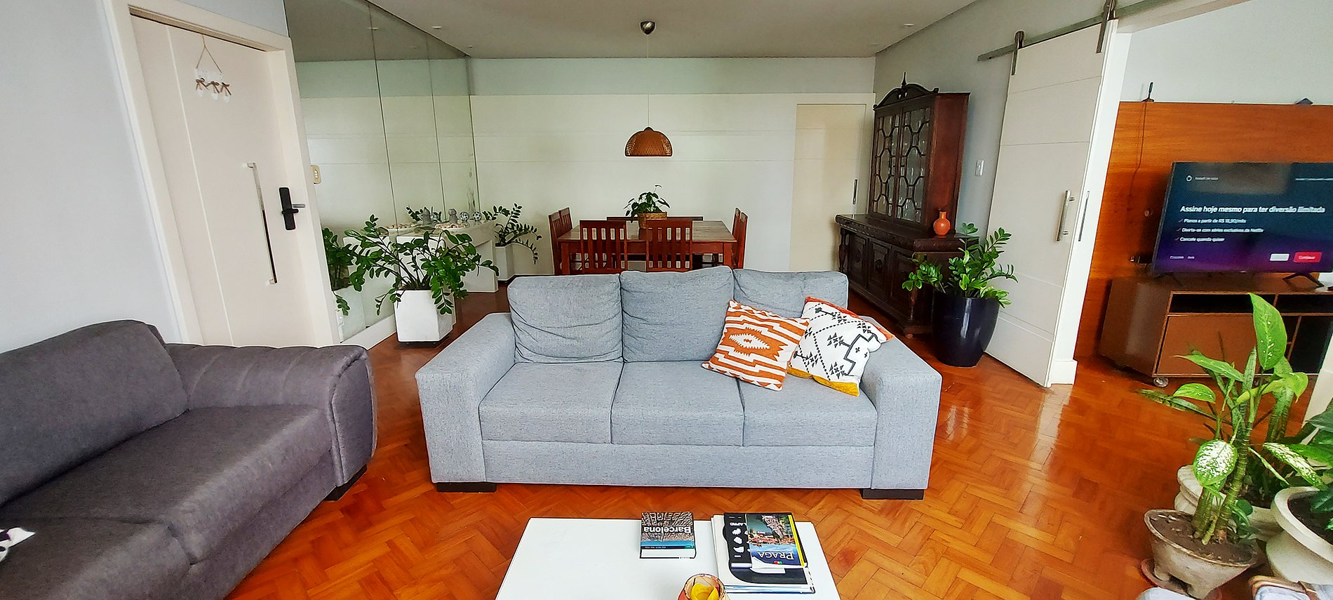 - A sala de TV anexa serve como o terceiro quarto, com porta de correr, sofá-cama casal e cama de solteiro. (esse cômodo não tem ar condicionado, tem ventilador)