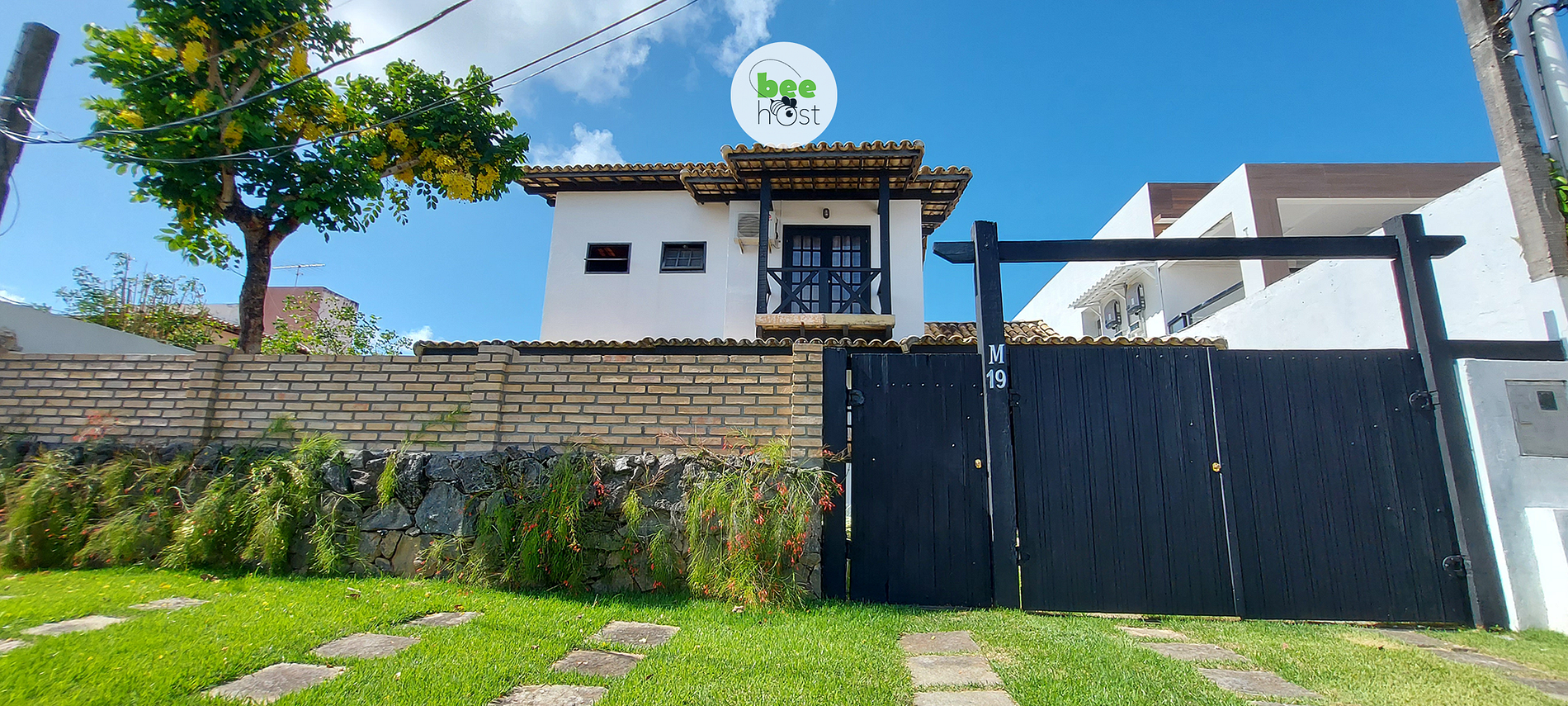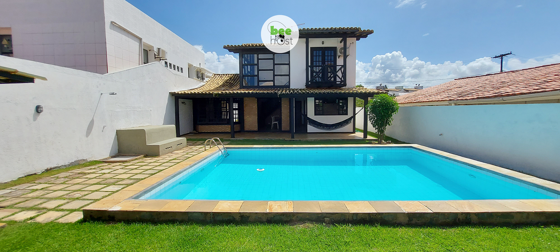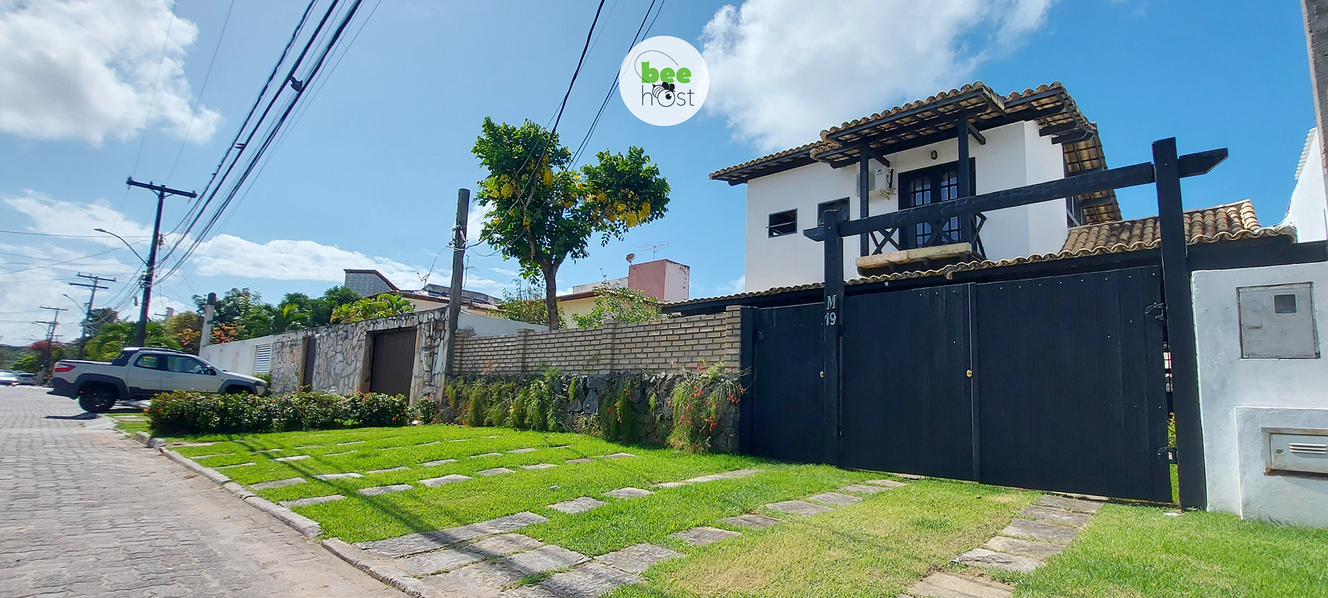 Linda casa de condomínio com 5 quartos, decoração rústica em madeira e muito estilo, além de espaçosa e ventilada. Tem uma piscina grande, churrasqueira, lareira, banheira de hidromassagem na suíte (não esquenta a água), WI-FI 250MB, garagem. O condomínio tem parque infantil, quadra poliesportiva, pista de skate, piscina e campo de futebol. A 5 minutos andando para a praia de Stella Maris.