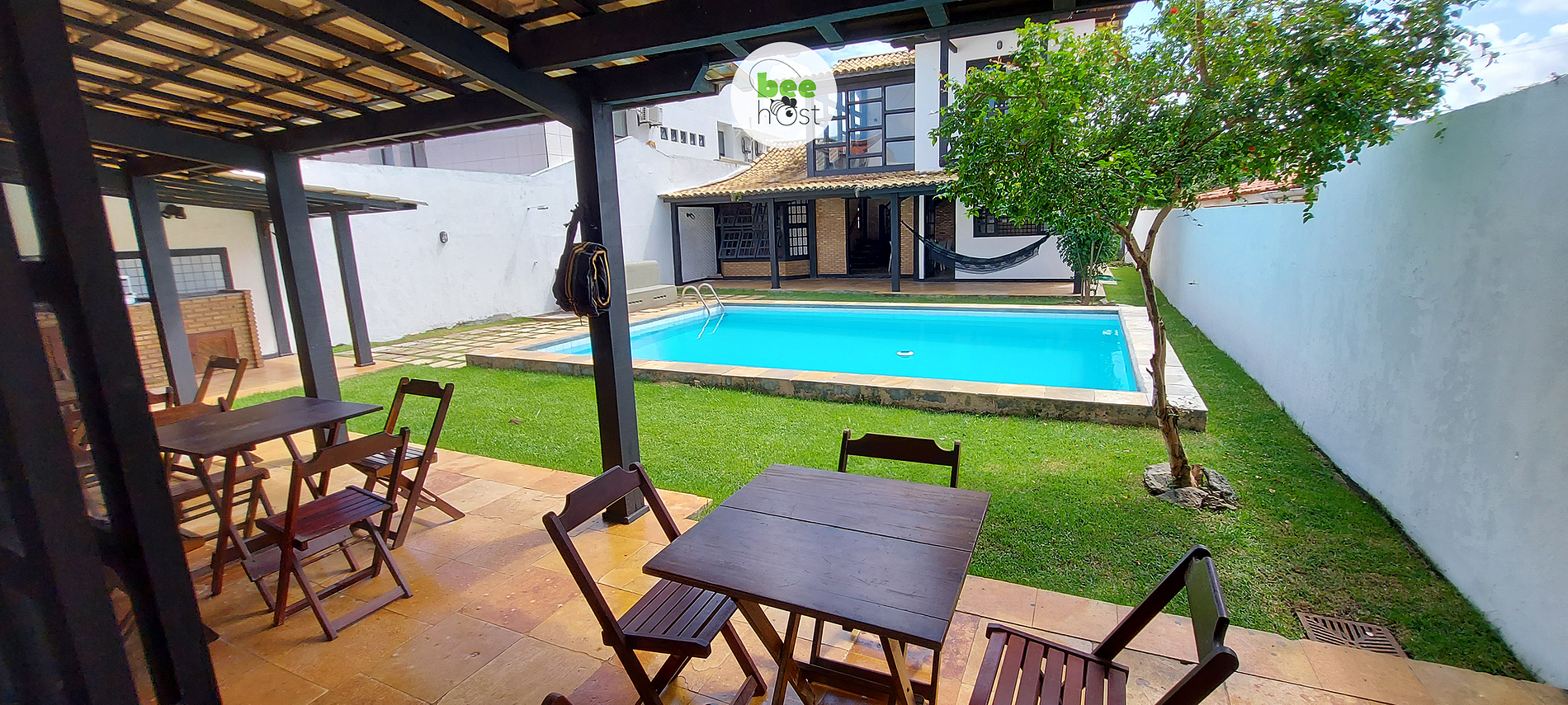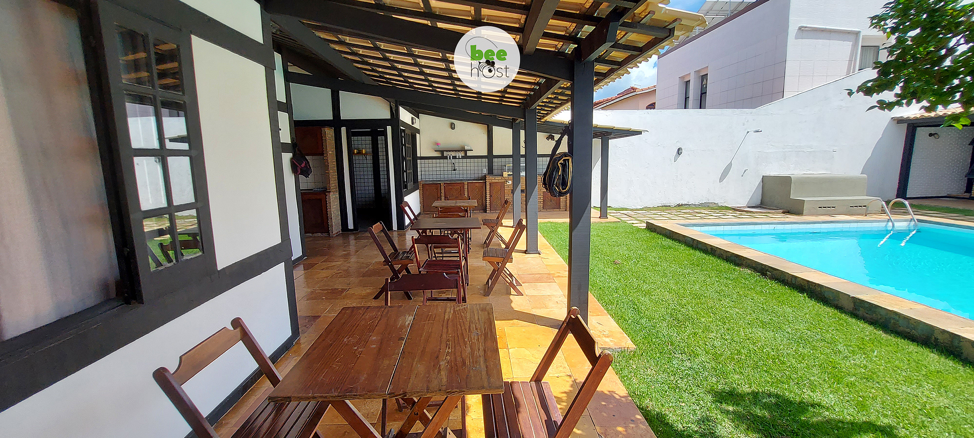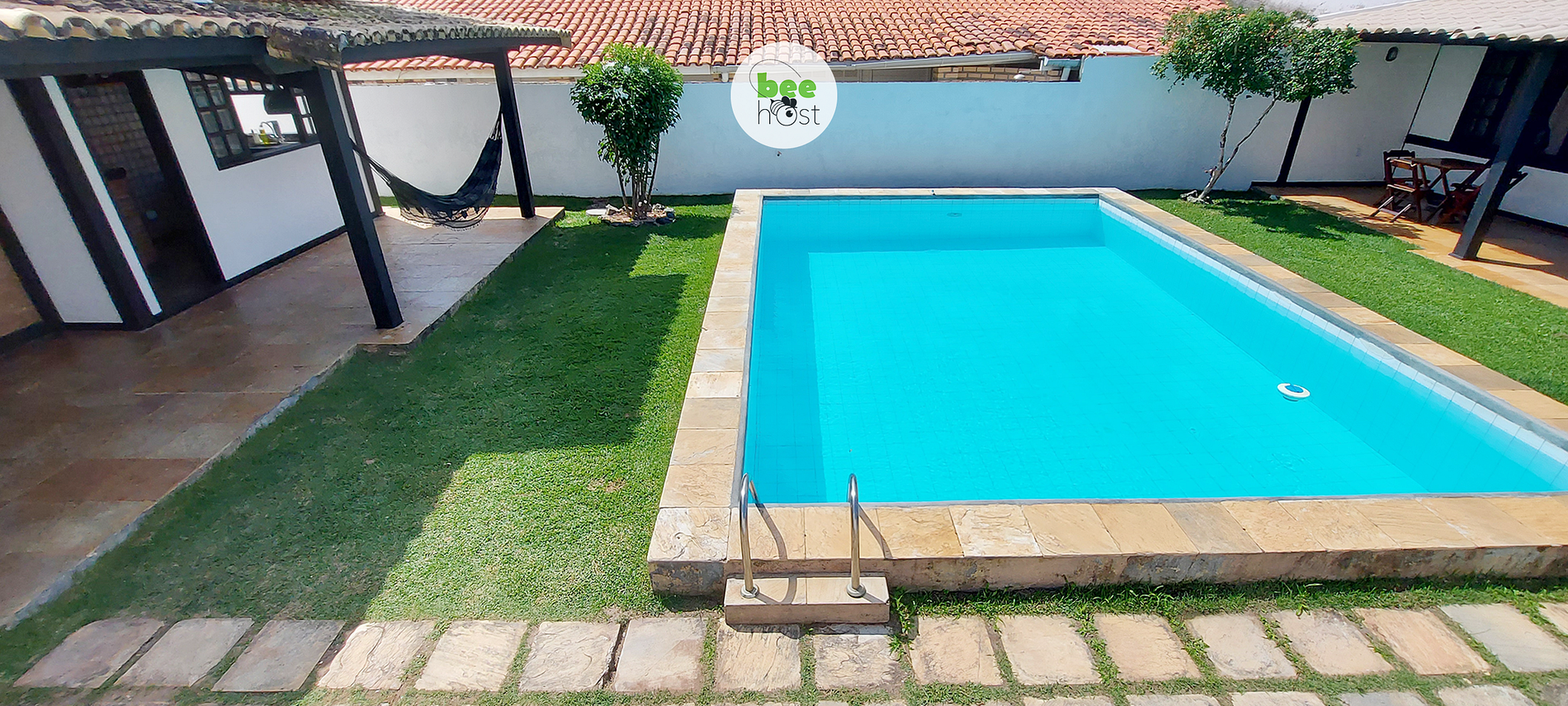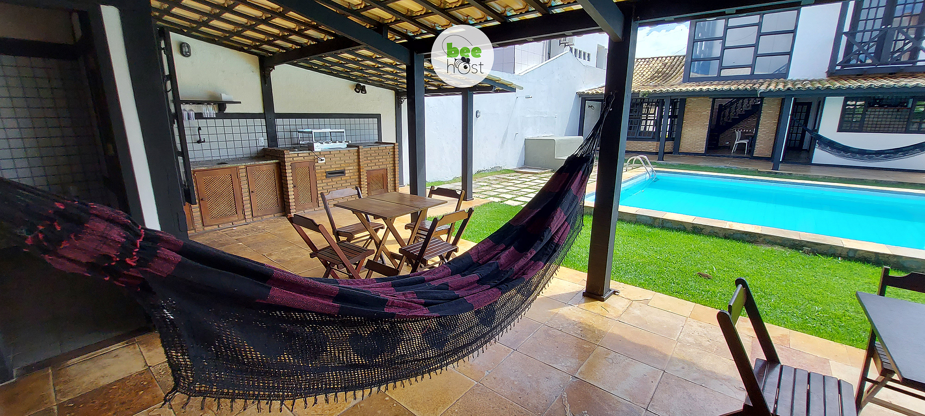 Linda casa de condomínio com 5 quartos, decoração rústica em madeira e muito estilo, além de espaçosa e ventilada. Tem uma piscina grande, churrasqueira, lareira, banheira de hidromassagem na suíte (não esquenta a água), WI-FI 250MB, garagem. O condomínio tem parque infantil, quadra poliesportiva, pista de skate, piscina e campo de futebol. A 5 minutos andando para a praia de Stella Maris.