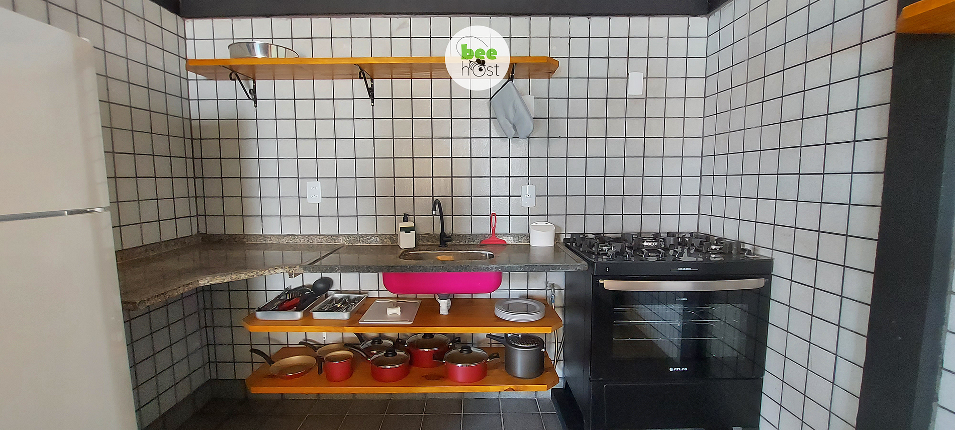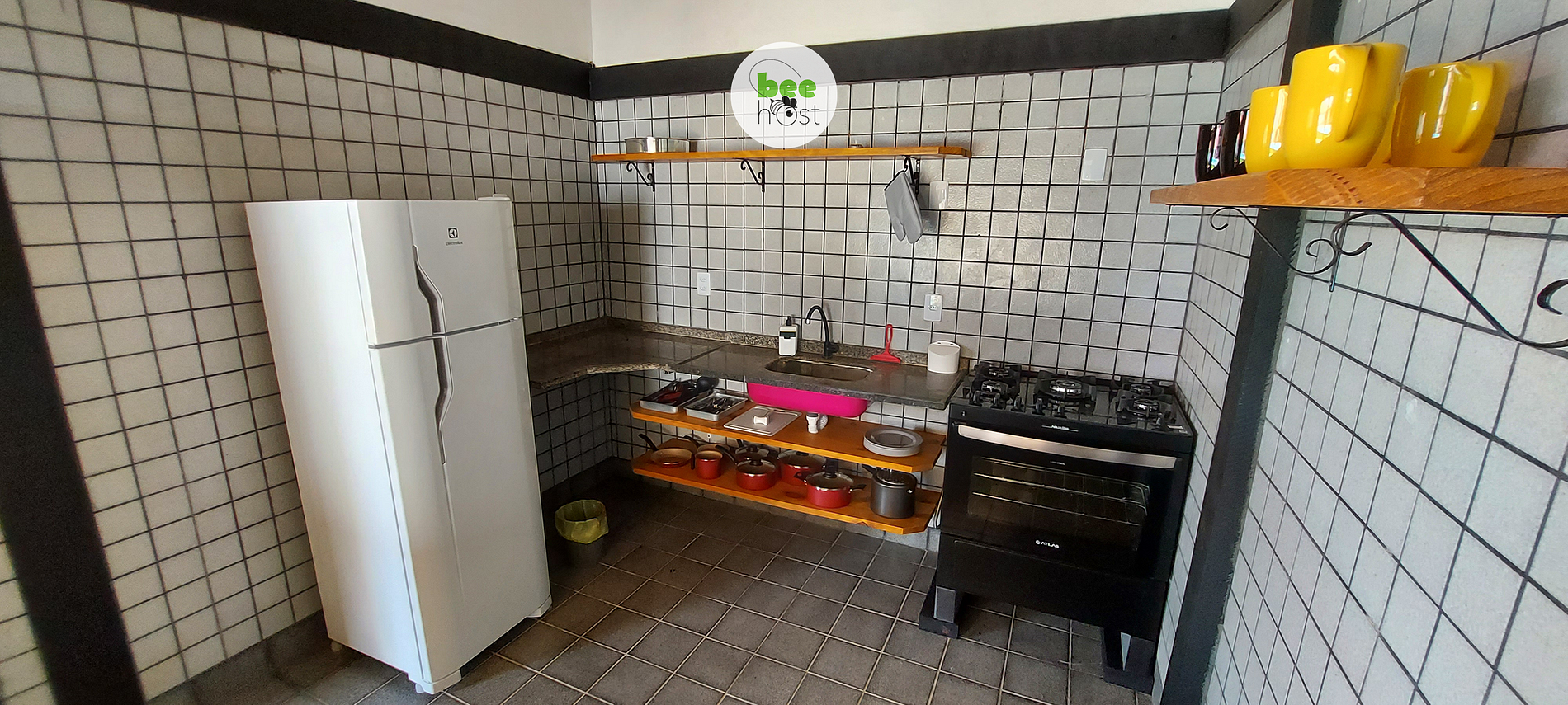 - Cozinha de apoio: geladeira duplex, fogão 5 bocas e itens básicos de cozinha.