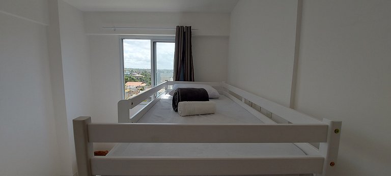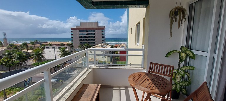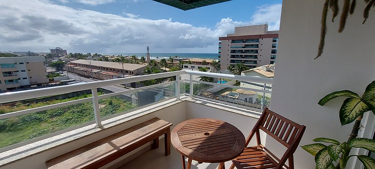 Lindo apartamento quarto e sala com varanda e vista-mar da praia de Ipitanga. Localizado no 3° andar, tem smart TV, WI-FI, ar condicionado split no quarto, cozinha com área de serviço e máquina de lavar. Prédio novo, com piscina, coworking e garagem.