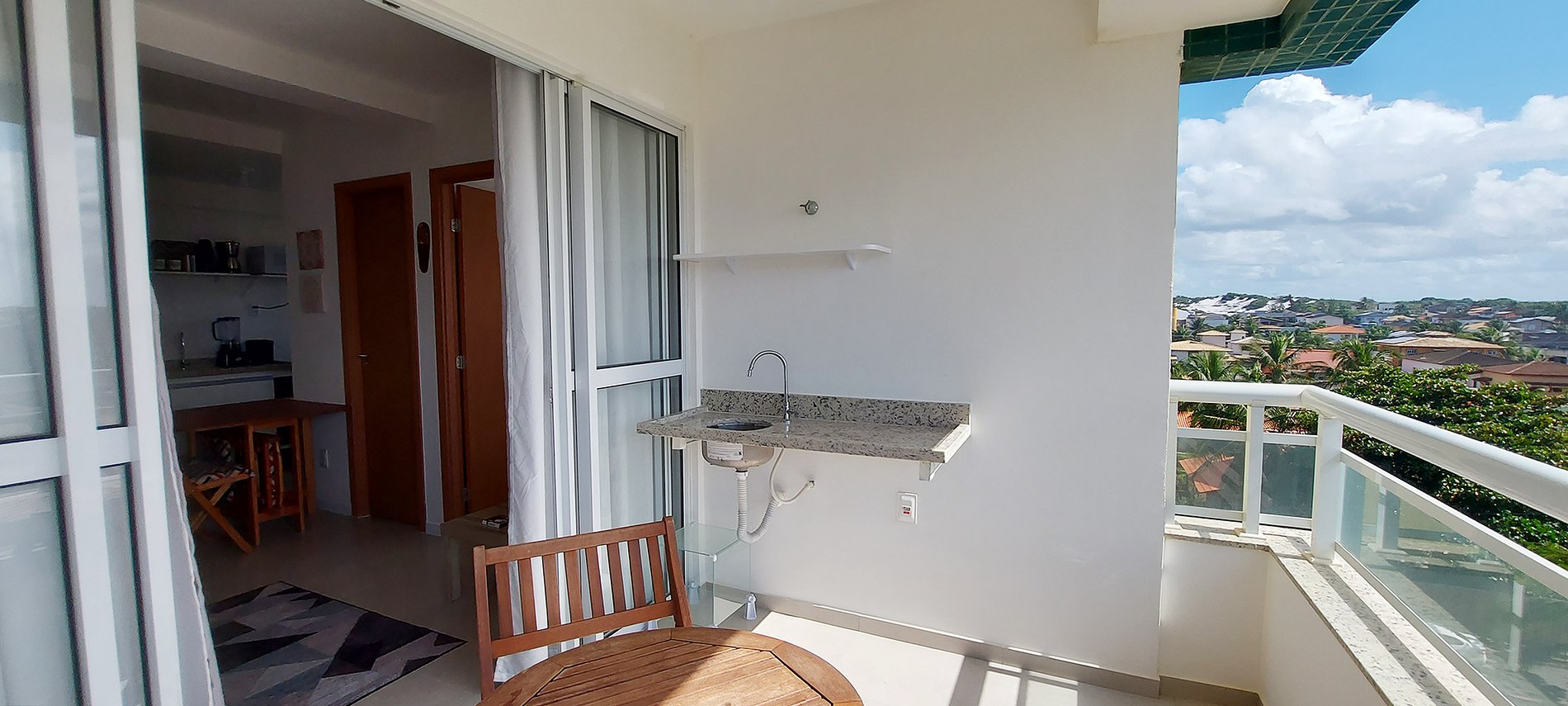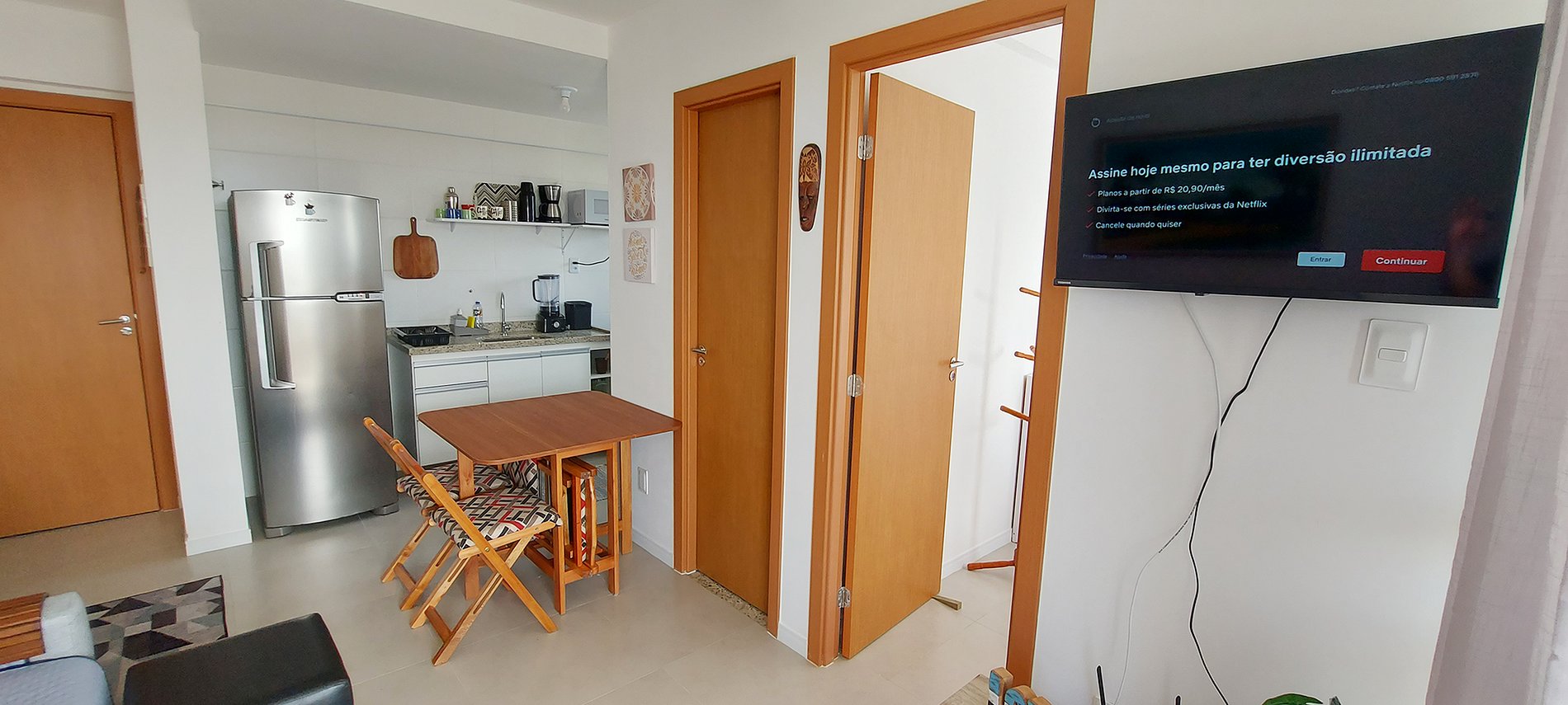Lindo apartamento quarto e sala com varanda e vista-mar da praia de Ipitanga. Localizado no 3° andar, tem smart TV, WI-FI, ar condicionado split no quarto, cozinha com área de serviço e máquina de lavar. Prédio novo, com piscina, coworking e garagem.