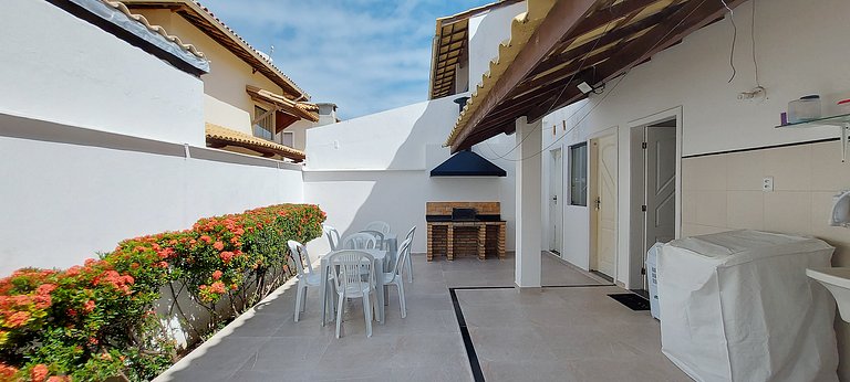 Casa ampla de 2 andares, em condomínio fechado com segurança 24hs, pertinho da praia de Stella Maris e comércios diversos. São 3 quartos e 1 suíte, cozinha completa, varanda, churrasqueira e 2 vagas de garagem.