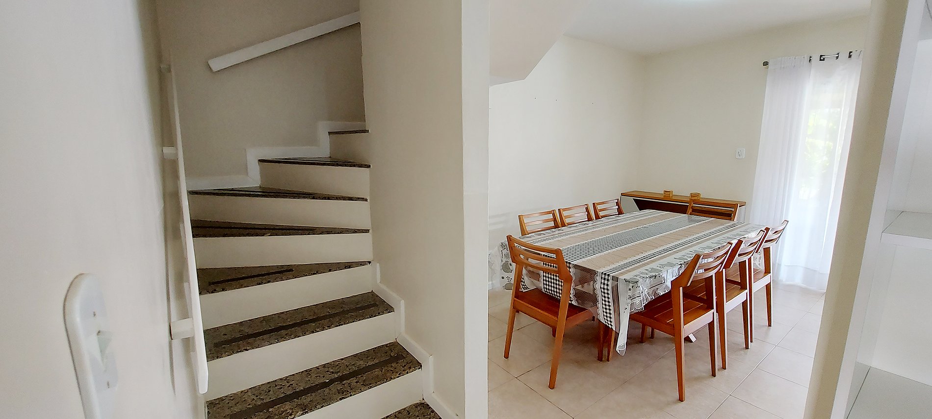 Casa ampla de 2 andares, em condomínio fechado com segurança 24hs, pertinho da praia de Stella Maris e comércios diversos. São 3 quartos e 1 suíte, cozinha completa, varanda, churrasqueira e 2 vagas de garagem.