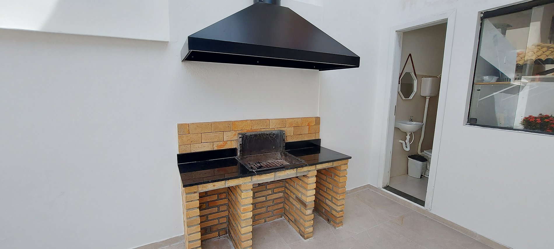 - churrasqueira grande com coifa e capa de proteção
