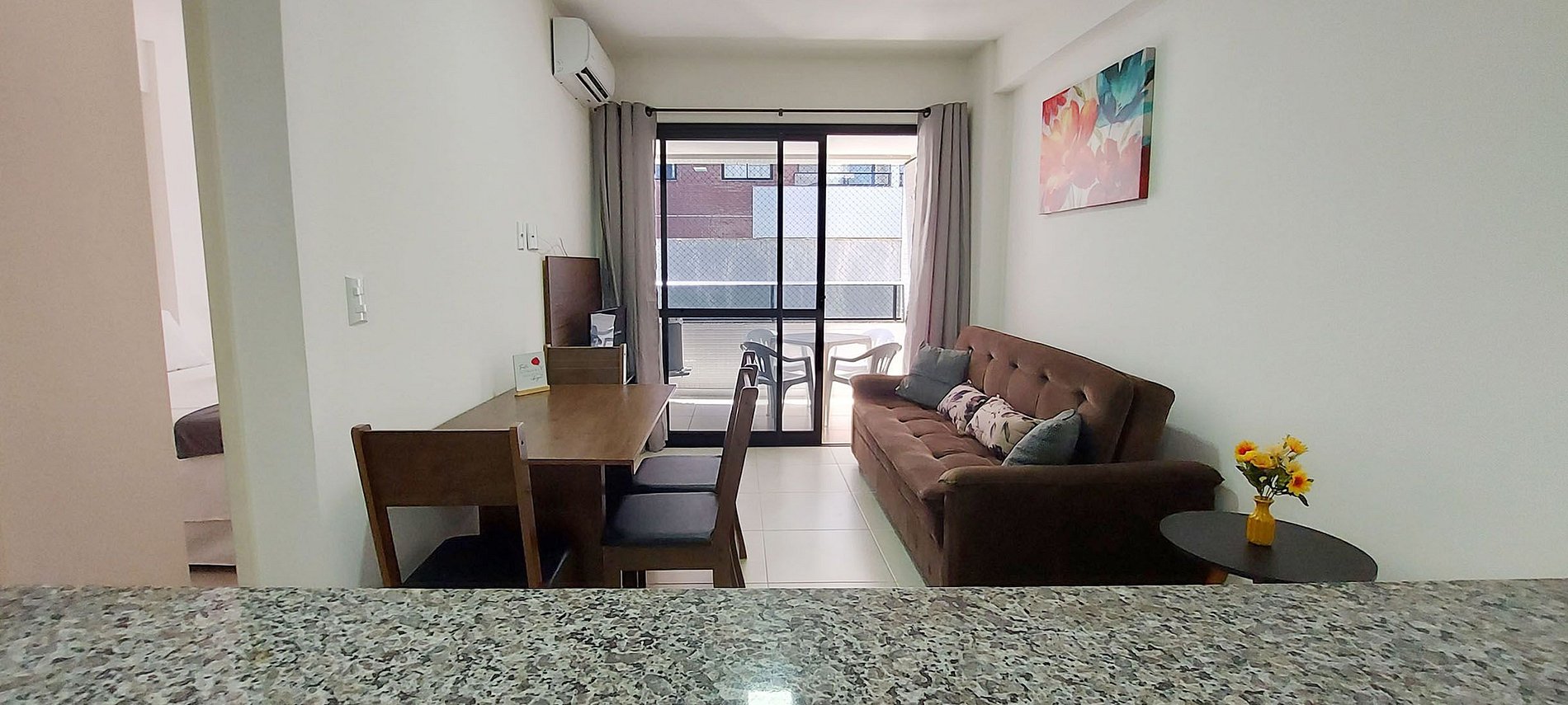 Quarto e sala com varanda, pertinho da praia de Ondina e do zoológico! Super bem localizado! Possui cozinha completa, ar condicionado split na sala e no quarto. Espaço para trabalho. Sofá-cama casal na sala (veja as fotos dele aberto antes de reservar), ventilador de mesa, SMART TV, WI-FI de alta velocidade. Cozinha com máquina de lavar.