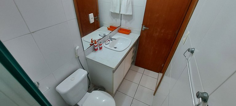 Você encontrará no local: sabonetes, toalha de rosto, piso de banheiro, papel higiênico, esponja. (A reposição destes é por conta do hóspede)