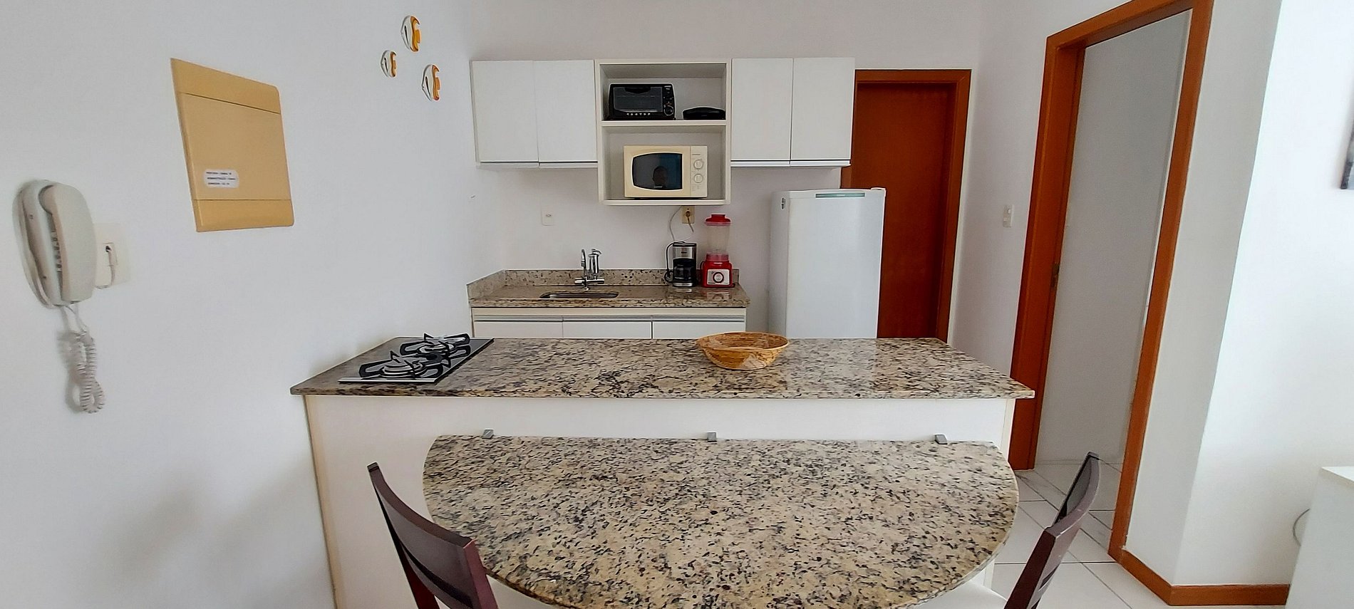 - Cozinha com geladeira, cooktop, filtro de água, micro-ondas, liquidificador, cafeteira, panela de pressão