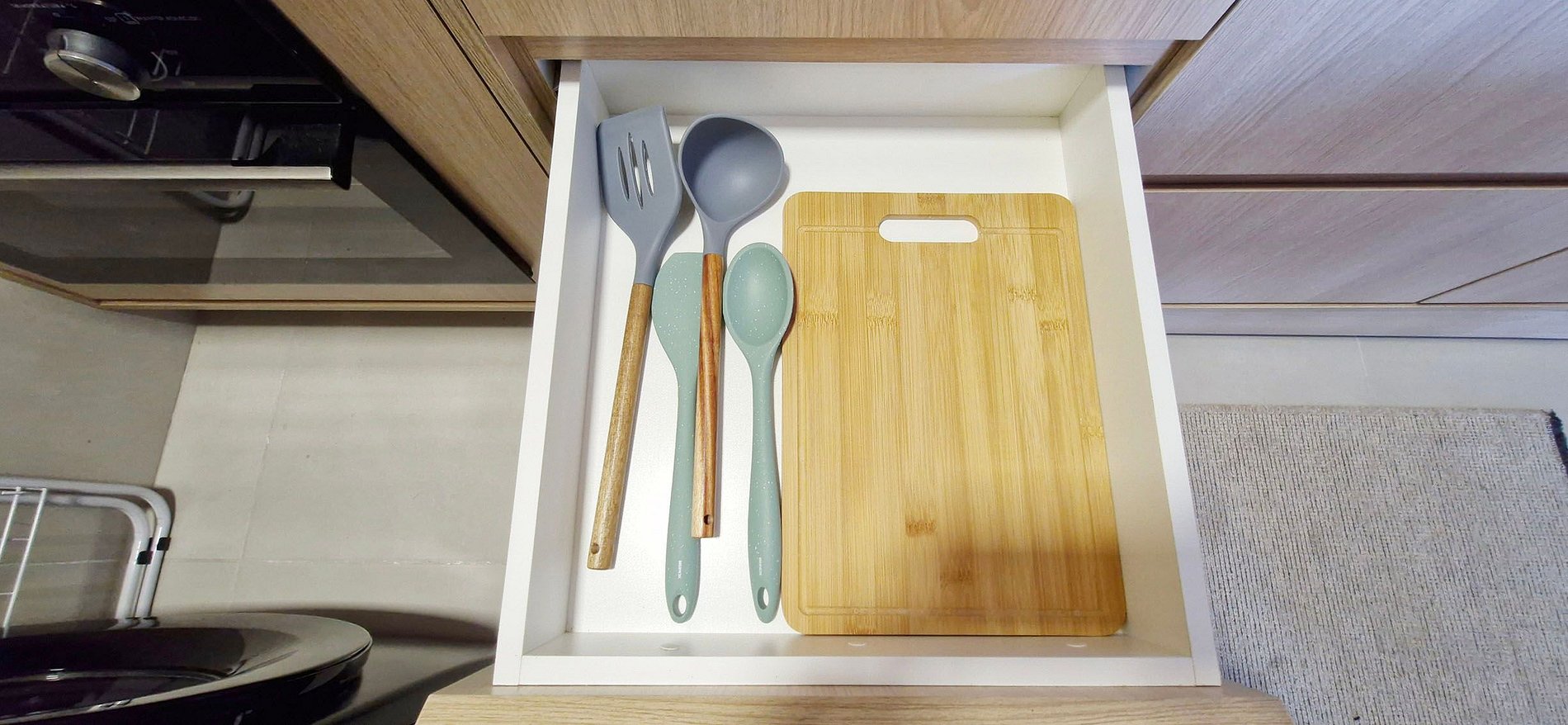 - Geladeira duplex, pia com filtro de água, cafeteira elétrica, liquidificador, sanduicheira, garrafa térmica, cooktop 4 bocas de indução, depurador de ar, forno elétrico, potes, talheres, panelas e acessórios de cozinha variados