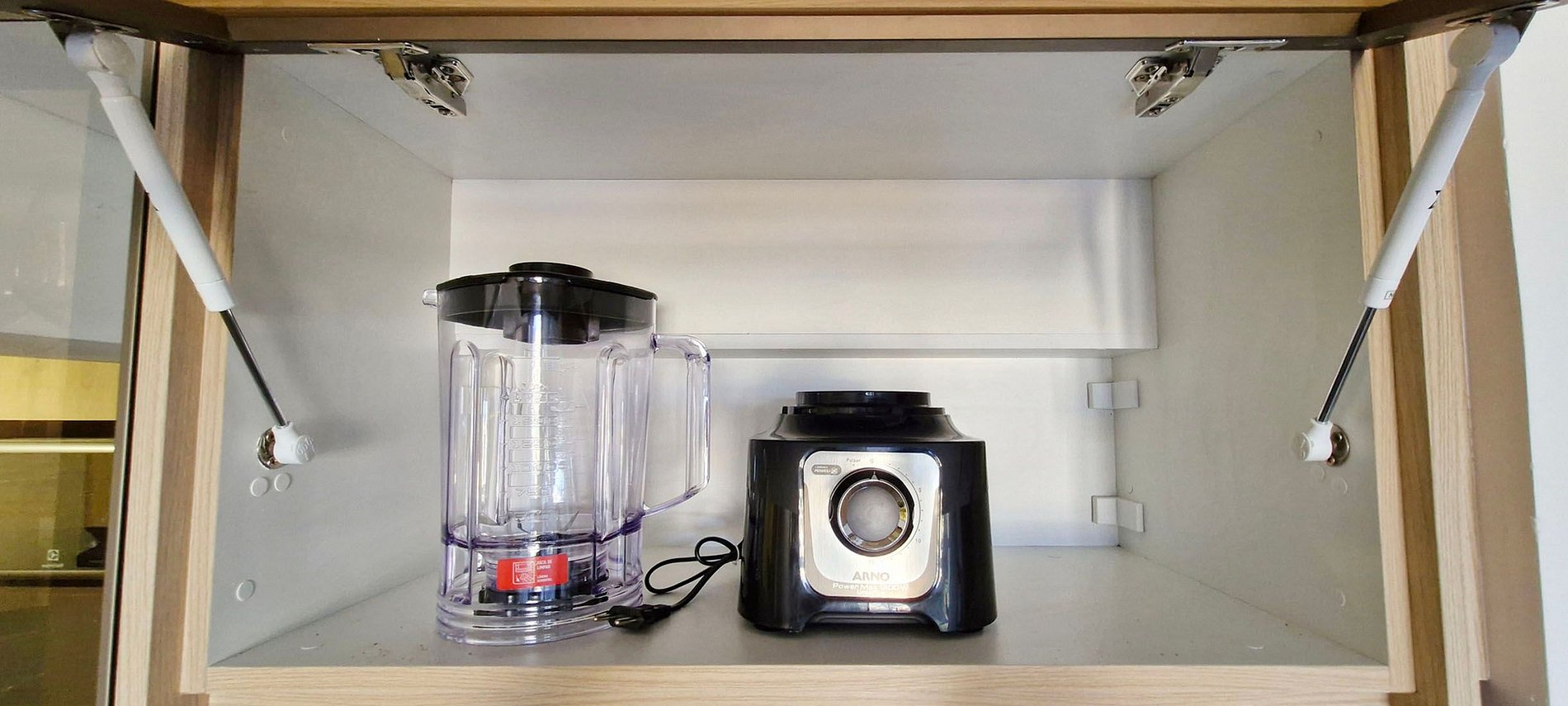 - Geladeira duplex, pia com filtro de água, cafeteira elétrica, liquidificador, sanduicheira, garrafa térmica, cooktop 4 bocas de indução, depurador de ar, forno elétrico, potes, talheres, panelas e acessórios de cozinha variados