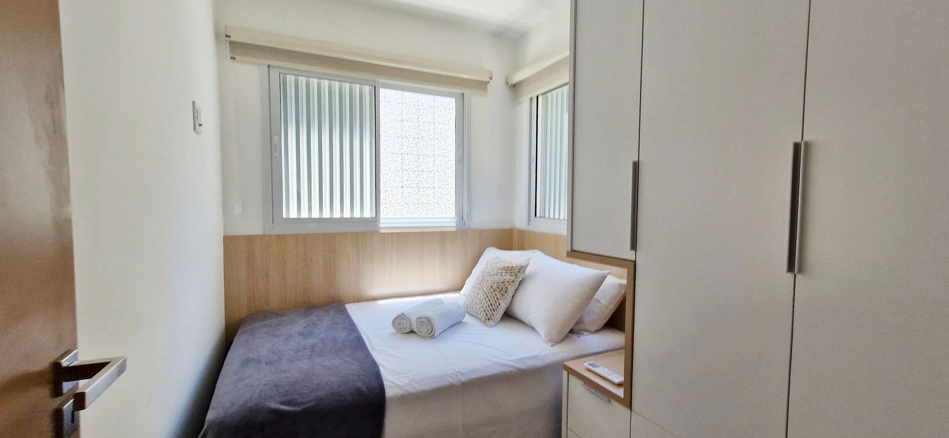 - Cama casal, guarda-roupa, ar condicionado split