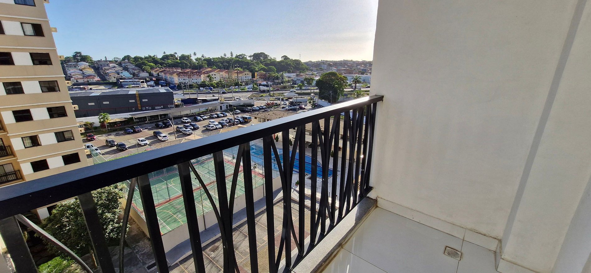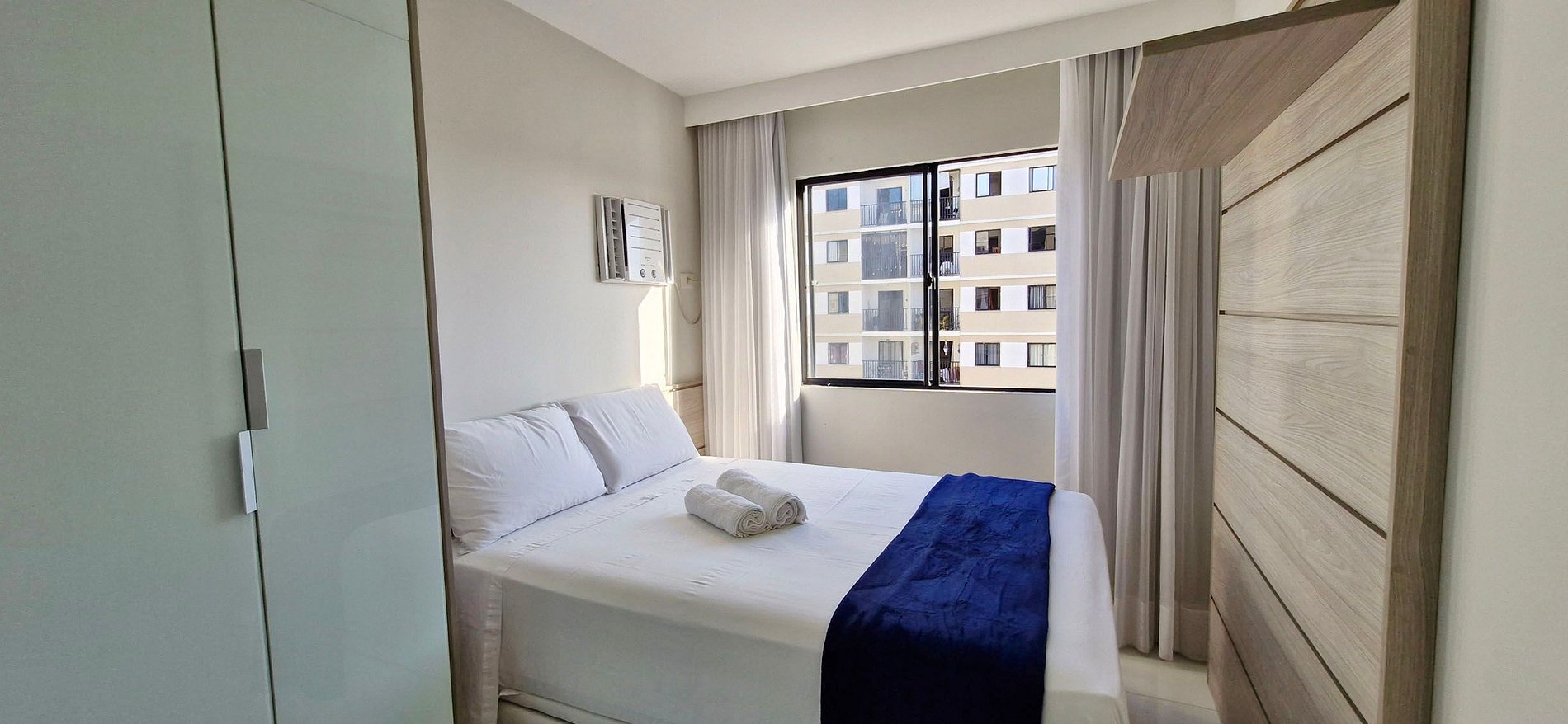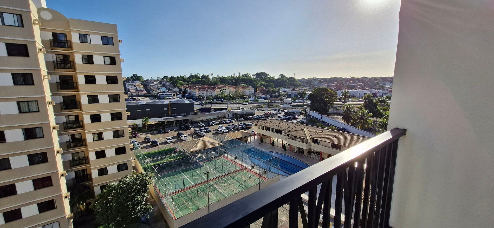 A 5km do aeroporto e 6km da praia de Itapuã! Tem 1 quarto com 2 camas de solteiro, 1 suíte com cama de casal e ar condicionado de janela, 1 banheiro social, cozinha completa com máquina lava e seca, sala de jantar, sala de estar com WI-FI e SMART TV, varanda. Condomínio com piscina, parque infantil, quadras poliesportivas, academia, sala de jogos, garagem e portaria 24hs. Área com ciclovia, quadra de vôlei de areia, quadra de futebol de areia, campo de futebol gramado, aparelhos para exercício.