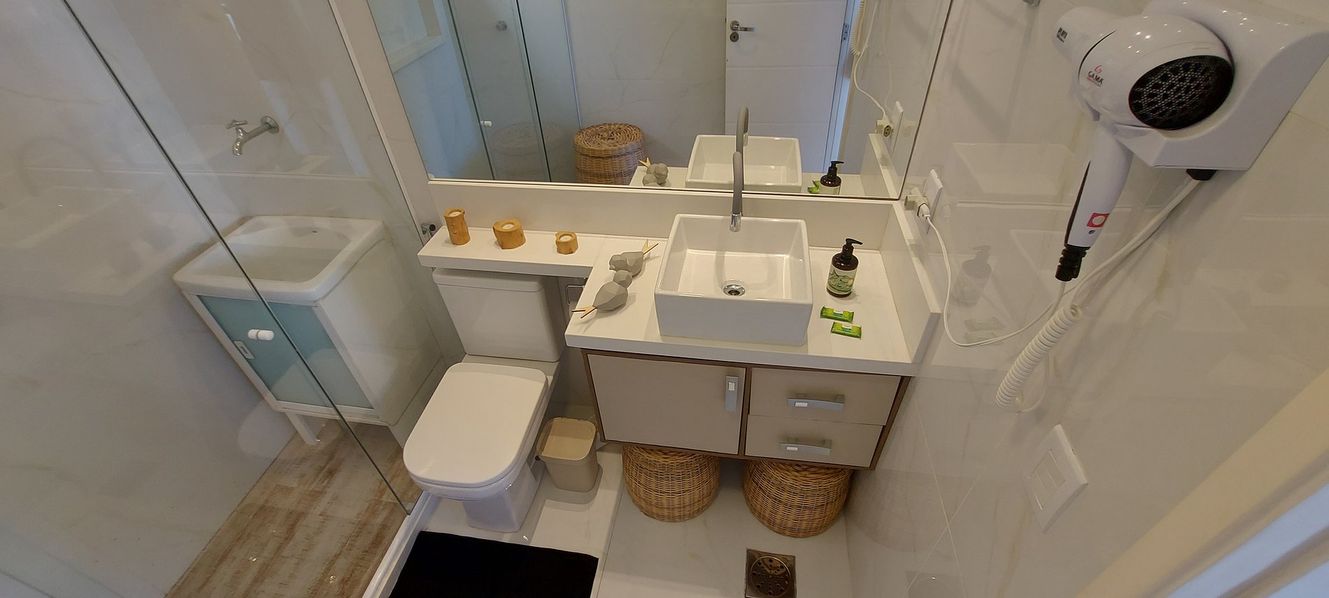 • Nenhum resíduo sólido pode ser descarregado no vaso sanitário (incluindo papel higiênico), pedimos que use a lixeira fornecida. Caso contrário, o vaso sanitário pode entupir e cobramos R$ 150 para desentupi-lo.