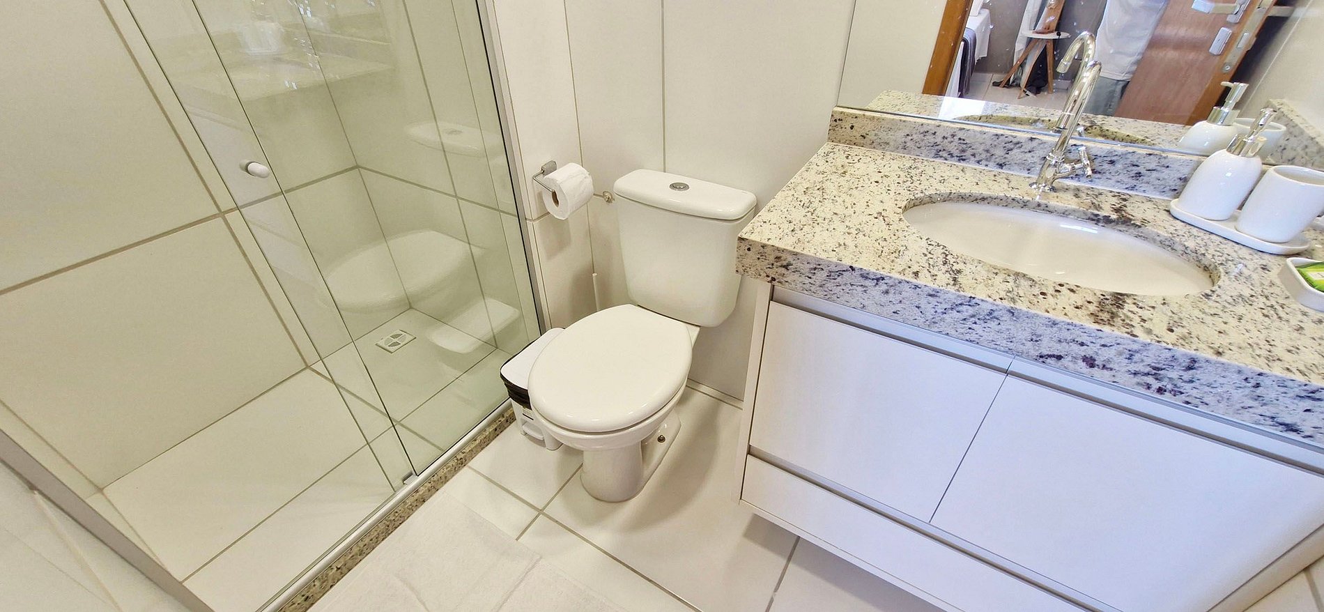 • Nenhum resíduo sólido pode ser descarregado no vaso sanitário (incluindo papel higiênico), pedimos que use a lixeira fornecida. Caso contrário, o vaso sanitário pode entupir e cobramos R$ 150 para desentupi-lo.