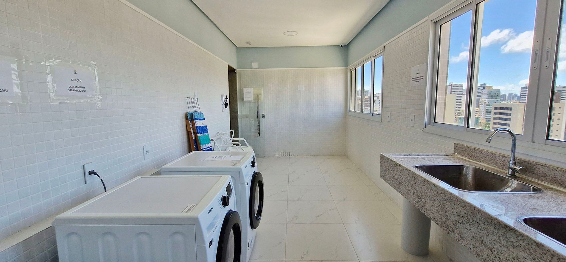 Prédio novo no bairro do Costa Azul a poucos metros da praia. Tem portaria 24hs, pátio, espaço coworking, lavanderia (paga à parte), academia e piscina na cobertura. Super bem localizado com bares, comércios e serviços na redondeza. Local muito procurado por turistas!