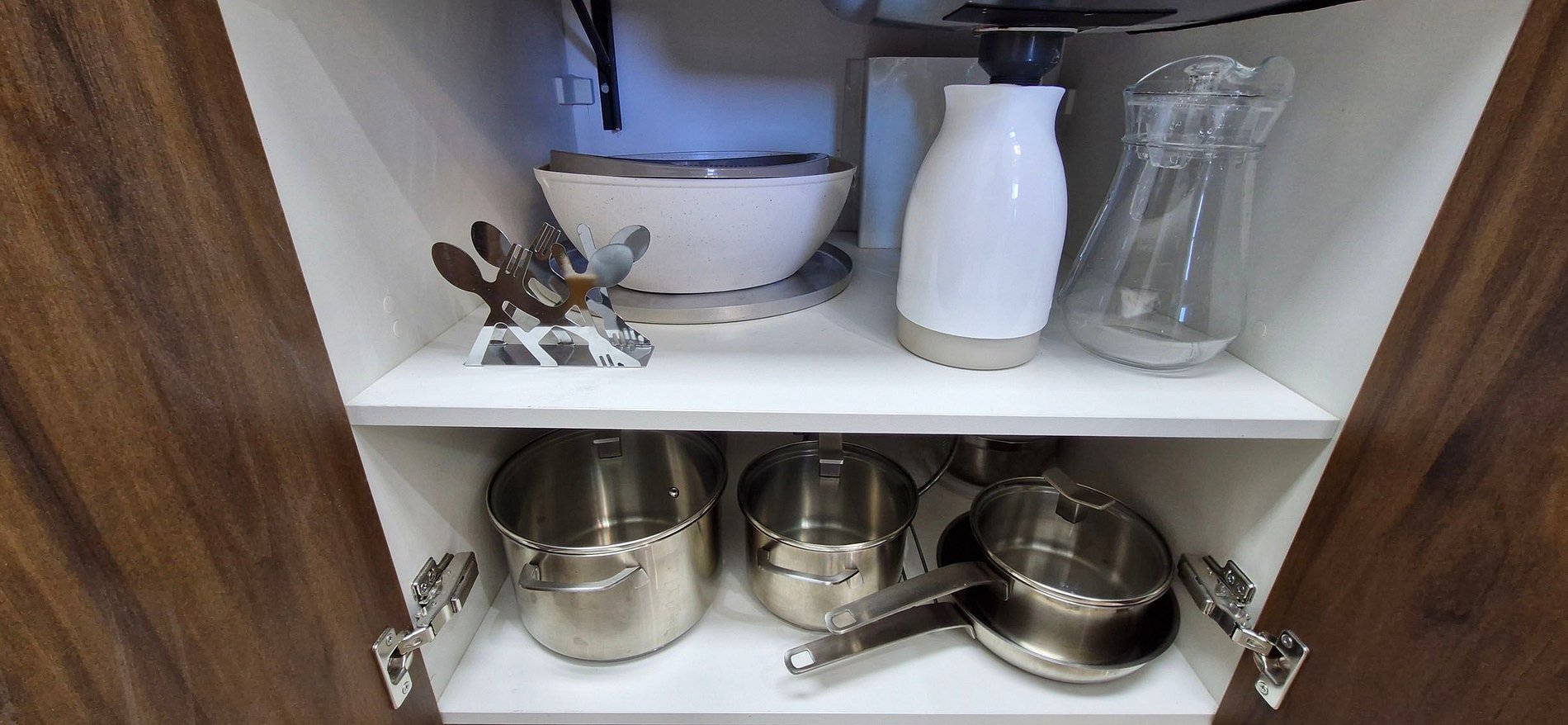 - Mesa com 4 cadeiras, geladeira duplex, forno elétrico, cooktop de indução com 4 bocas, filtro de água, microondas, sanduicheira, liquidificador, cafeteria elétrica, panelas, talheres, pratos, itens básicos de cozinha e ferro de passar.