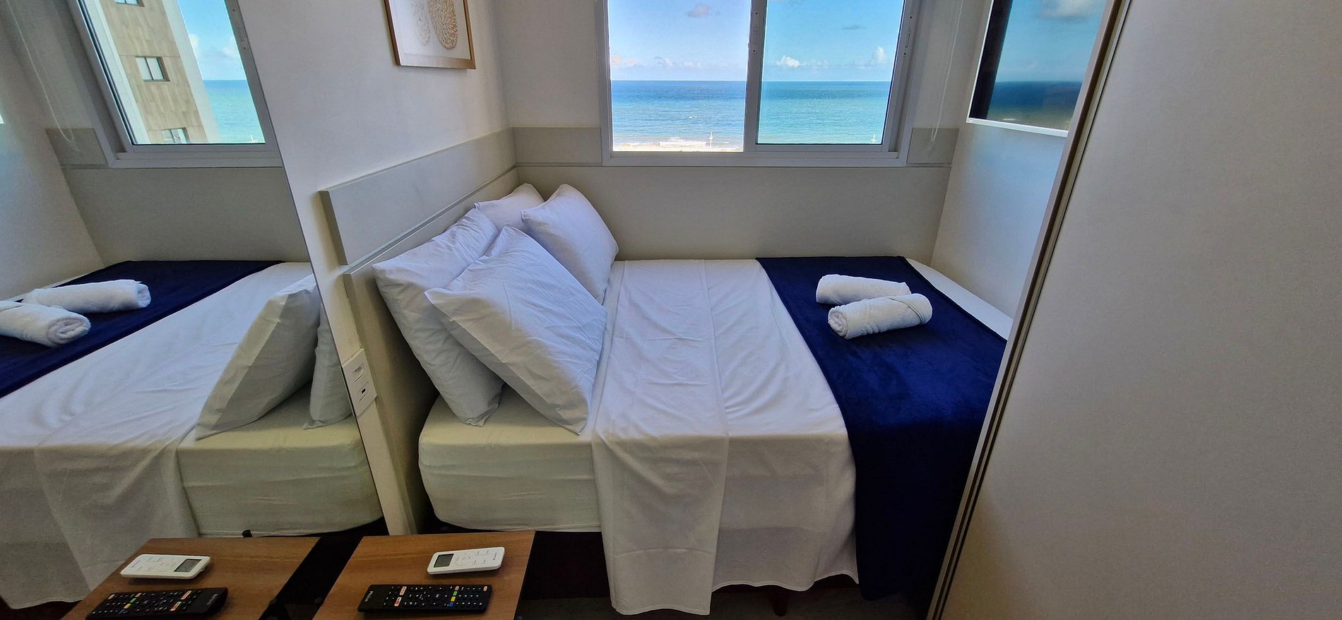 Lindo apartamento de 2/4 com 30m², bem decorado, no Costa Azul! A 5min da praia, próximo a supermercado, farmácia e comércios. Quarto (1) com cama de casal, smart TV, ar condicionado split, guarda-roupa. Quarto (2) com 2 camas de solteiro, ar condicionado split e guarda-roupas. Sala com smart TV e sofá. Cozinha completa. Portaria 24hs, academia, piscina, co-working, 1 vaga de garagem rotativa (apenas veículos pequenos).