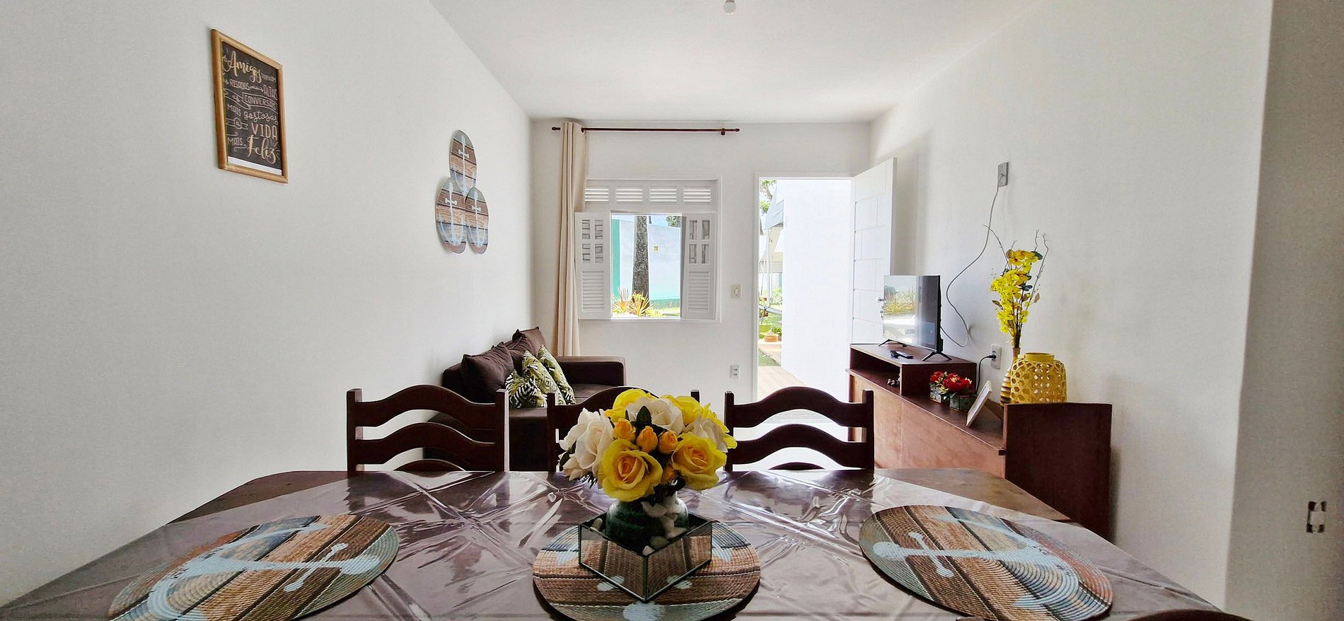 Village com 3 quartos, 2 banheiros, sala com smart TV, WI-FI, máquina de lavar, varanda com churrasqueira e cozinha. Condomínio com piscina. Atravessando a rua você chega na praia! Ótimo para descansar!
