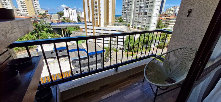 Apartamento bem decorado no último andar com varanda, bem ventilado na rua do Hospital Mater Dei no Rio Vermelho. Cozinha completa e máquina de lavar. Sala com smart TV e canais locais, WI-FI, varanda, cozinha com área de serviço, um quarto duplo e uma suíte.