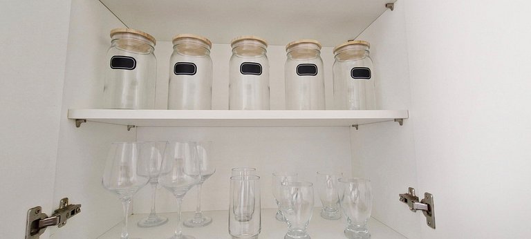 - Cooktop 4 bocas a gás, geladeira duplex, forninho elétrico, filtro de água, sanduicheira, cafeteira elétrica, liquidificador, garrafa térmica, talheres, copos, taças, panelas e itens básicos de cozinha