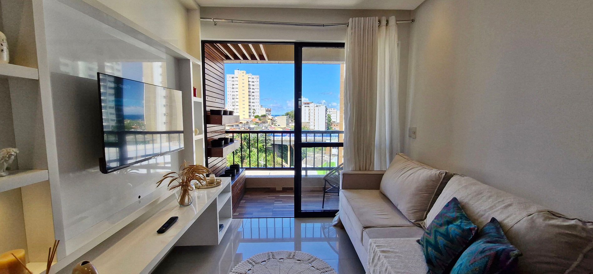 Apartamento bem decorado no último andar com varanda, bem ventilado na rua do Hospital Mater Dei no Rio Vermelho. Cozinha completa e máquina de lavar. Sala com smart TV e canais locais, WI-FI, varanda, cozinha com área de serviço, um quarto duplo e uma suíte.
