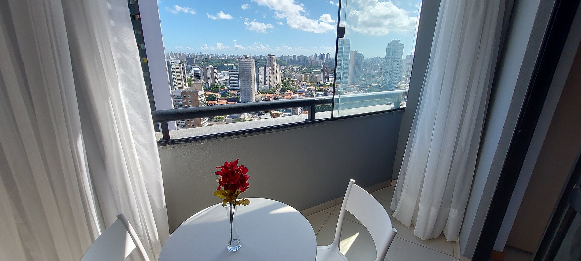 Linda suíte com varanda no 23º andar no Condomínio Boulevard Side Residencial, mesmo prédio do Hotel Mercure no Caminho das Árvores. Com cama queen, TV com canais locais, WI-FI, estação de trabalho e copa. Super bem localizada, perto de shoppings e serviços diversos. O local tem piscina ao ar livre (adulto e infantil) e piscina coberta com raia, sauna, academia, parque infantil, mini mercado, bar, restaurante 24hs. Perto da Casa do Comércio, Salvador Shopping e Hospital da Bahia.