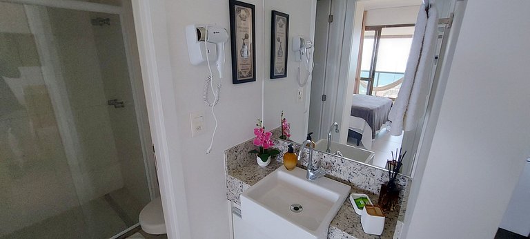 Lindo apartamento com uma vista mar incrível em condomínio refinado na Barra! Pertinho do circuito do Carnaval Barra-Ondina! Sala de estar ampla com ventilador de teto, sofá-cama de casal (veja as fotos antes de reservar), smart TV, WI-FI. Quarto com cama casal, ar condicionado split e smart TV. Cozinha equipada. Prédio com piscina, academia, garagem com carregador elétrico veicular e recepção 24hs. Uma experiência inesquecível!