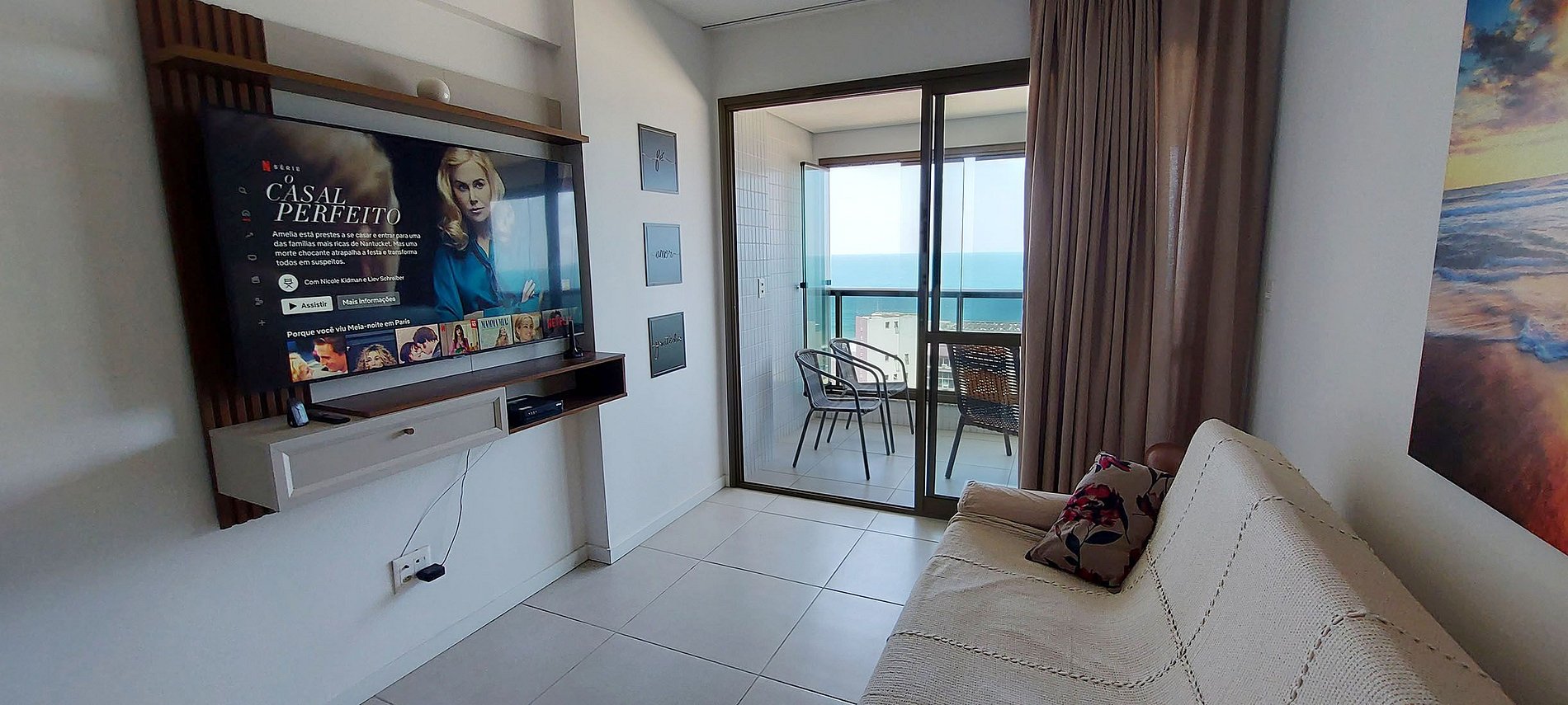 Lindo apartamento com uma vista mar incrível em condomínio refinado na Barra! Pertinho do circuito do Carnaval Barra-Ondina! Sala de estar ampla com ventilador de teto, sofá-cama de casal (veja as fotos antes de reservar), smart TV, WI-FI. Quarto com cama casal, ar condicionado split e smart TV. Cozinha equipada. Prédio com piscina, academia, garagem com carregador elétrico veicular e recepção 24hs. Uma experiência inesquecível!