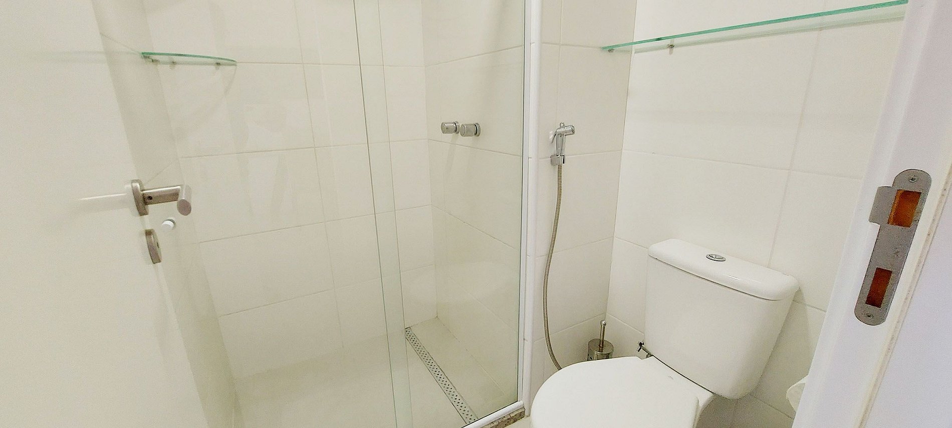 - Banheiro com box, chuveiro quente alimentado por energia eólica, secador de cabelo, ducha higiênica
