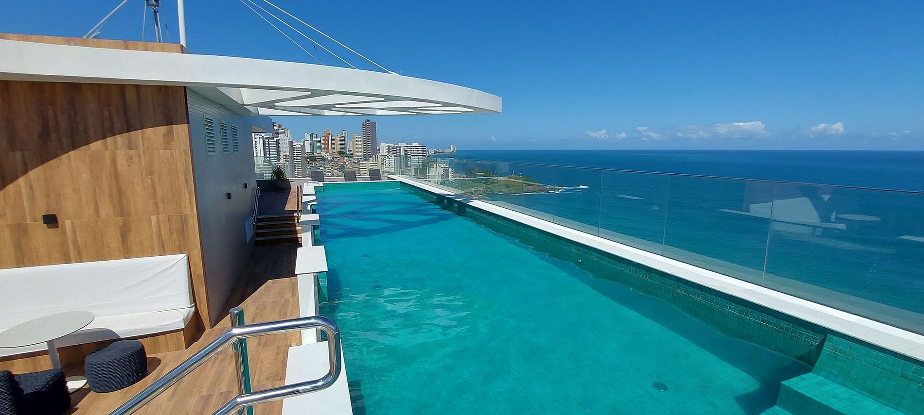 Prédio novo com vista mar na Barra! Pertinho do circuito do Carnaval Barra-Ondina! Com piscina, academia, garagem e recepção 24hs. Super bem localizado. Uma experiência incrível!