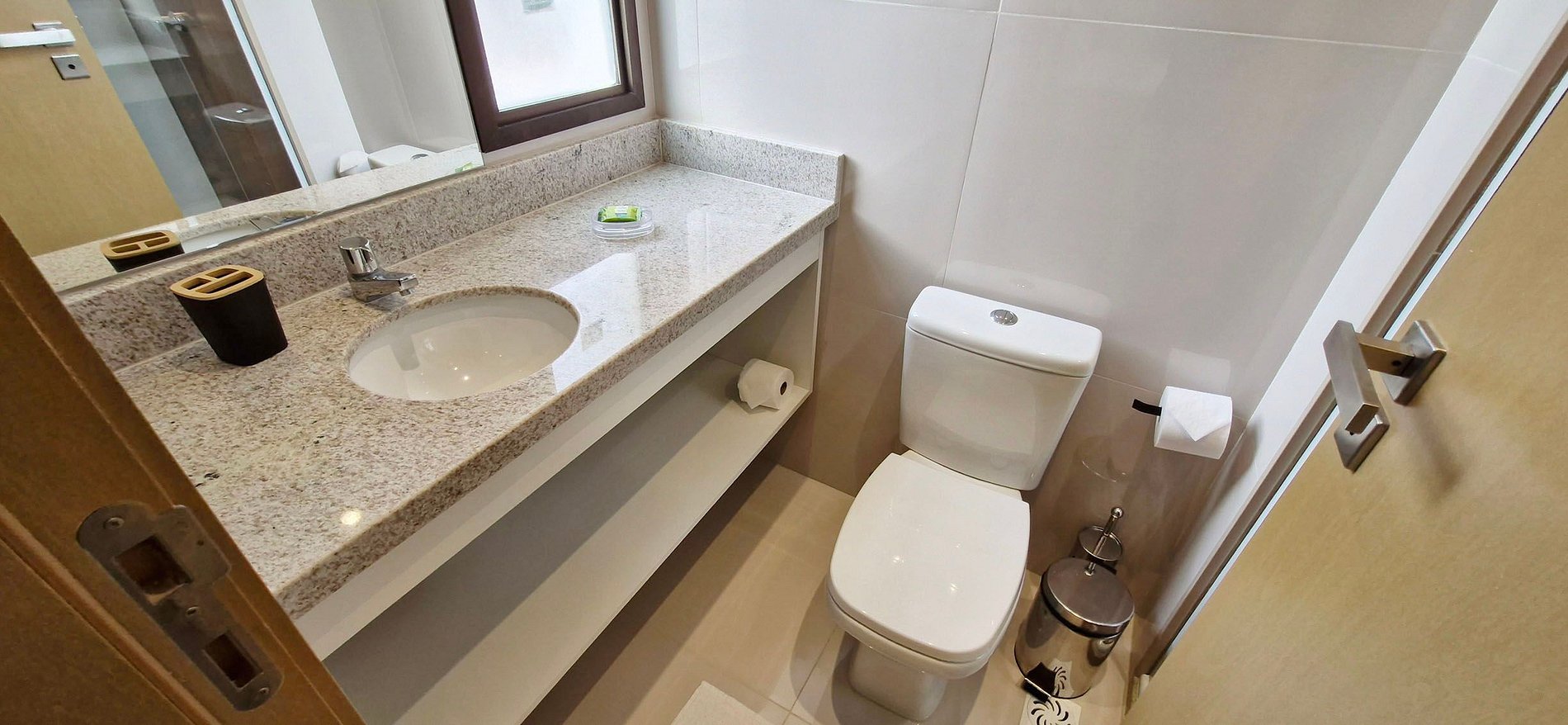 • Nenhum resíduo sólido pode ser descarregado no vaso sanitário (incluindo papel higiênico), pedimos que use a lixeira fornecida. Caso contrário, o vaso sanitário pode entupir e cobramos R$ 150 para desentupi-lo.
