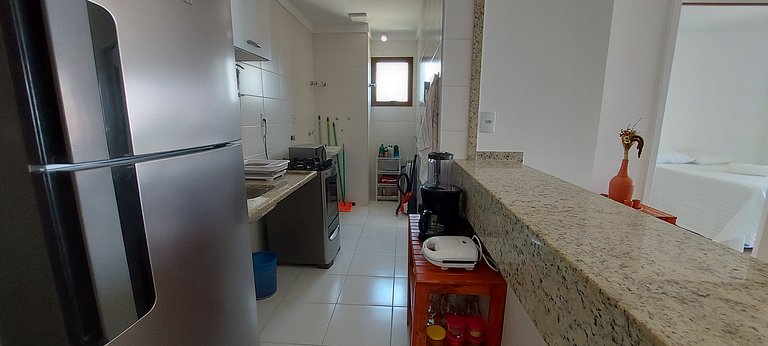 - Cozinha completa com filtro de água, liquidificador, cafeteira elétrica, sanduicheira, fogão 4 bocas, geladeira duplex, microondas