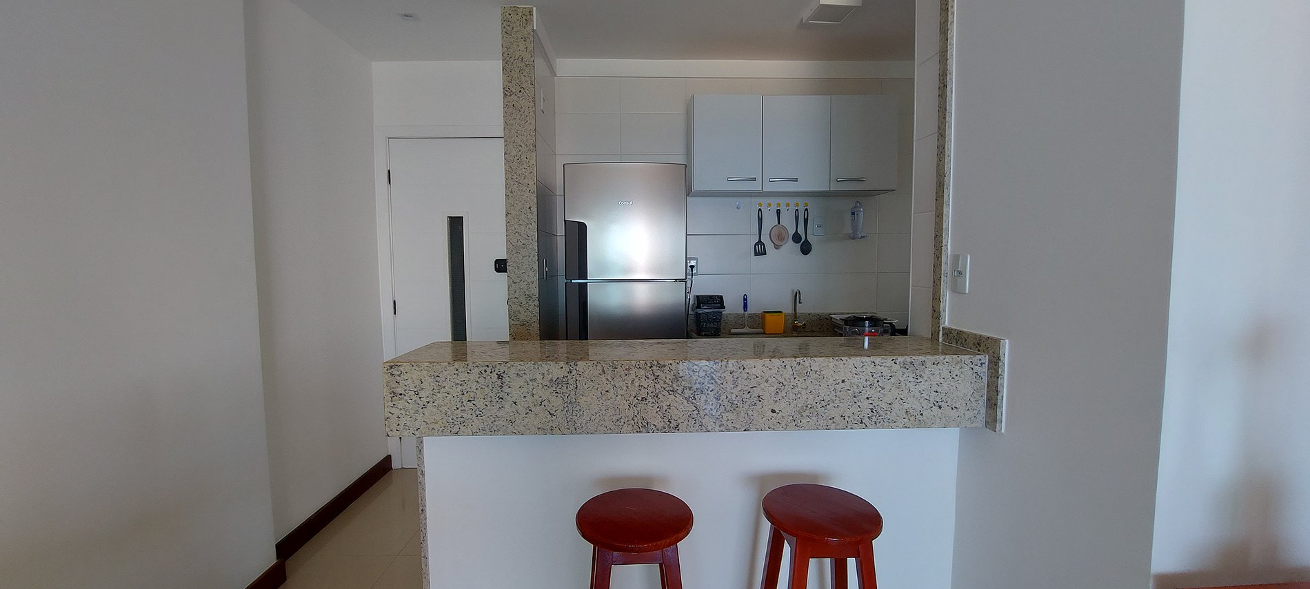 - Cozinha completa com filtro de água, liquidificador, cafeteira elétrica, sanduicheira, fogão 4 bocas, geladeira duplex, microondas