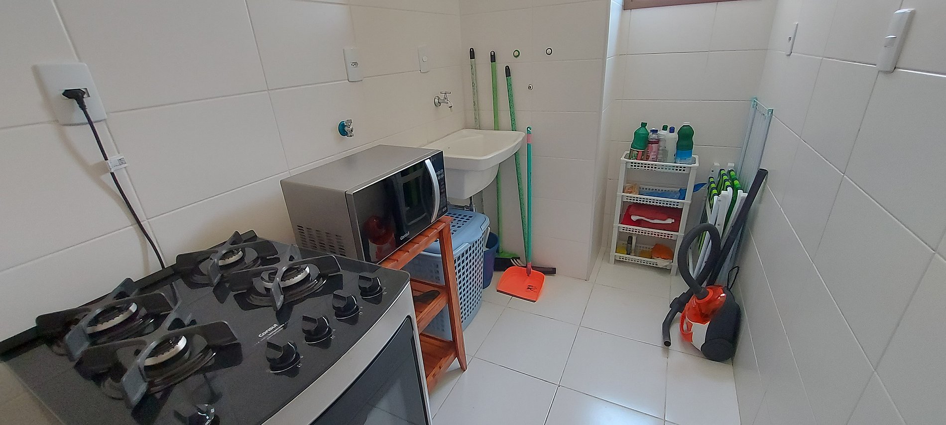 - Área de serviço com pia, ferro de passar, varal de pé, aspirador de pó, 2 cadeiras de praia