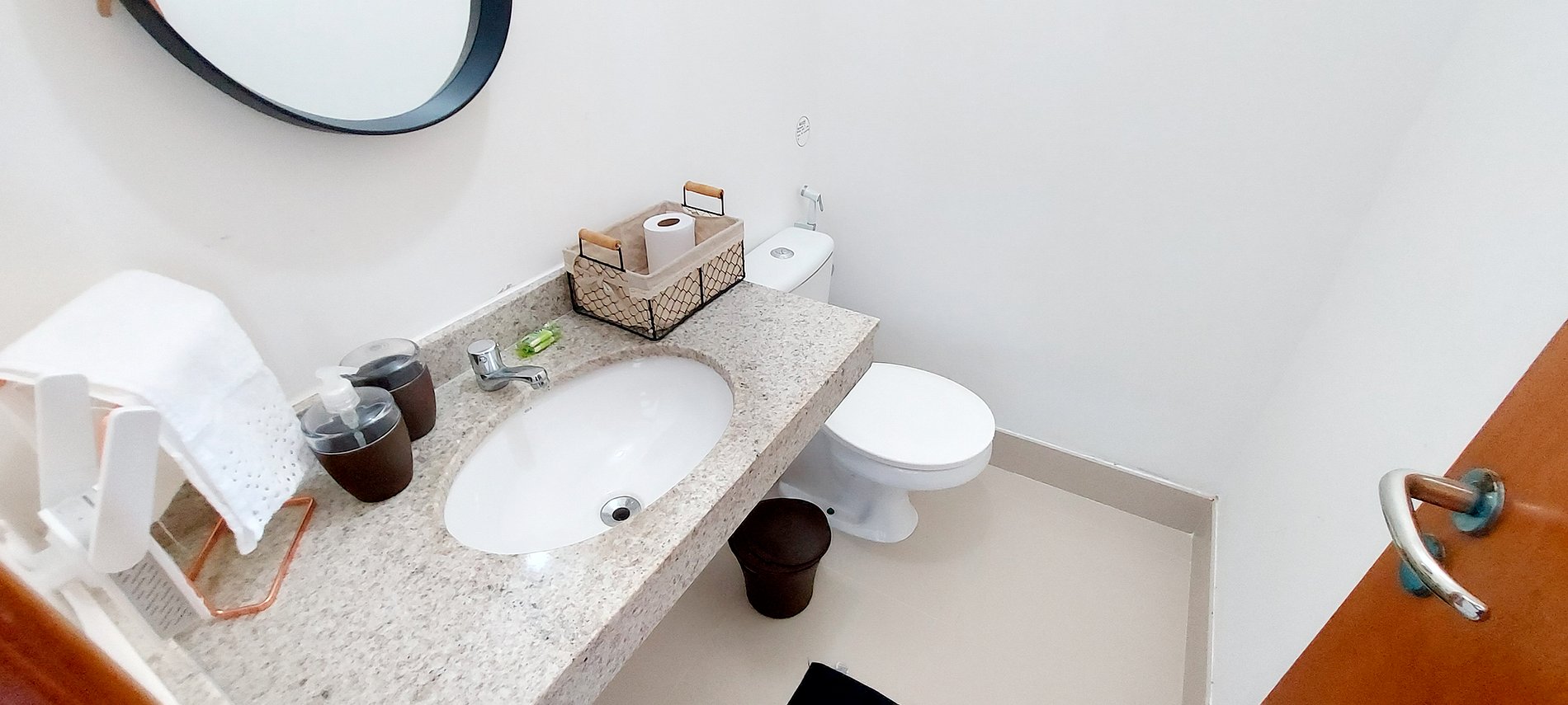 • Nenhum resíduo sólido pode ser descarregado no vaso sanitário (incluindo papel higiênico), pedimos que use a lixeira fornecida. Caso contrário, o vaso sanitário pode entupir e cobramos R$ 150 para desentupi-lo.