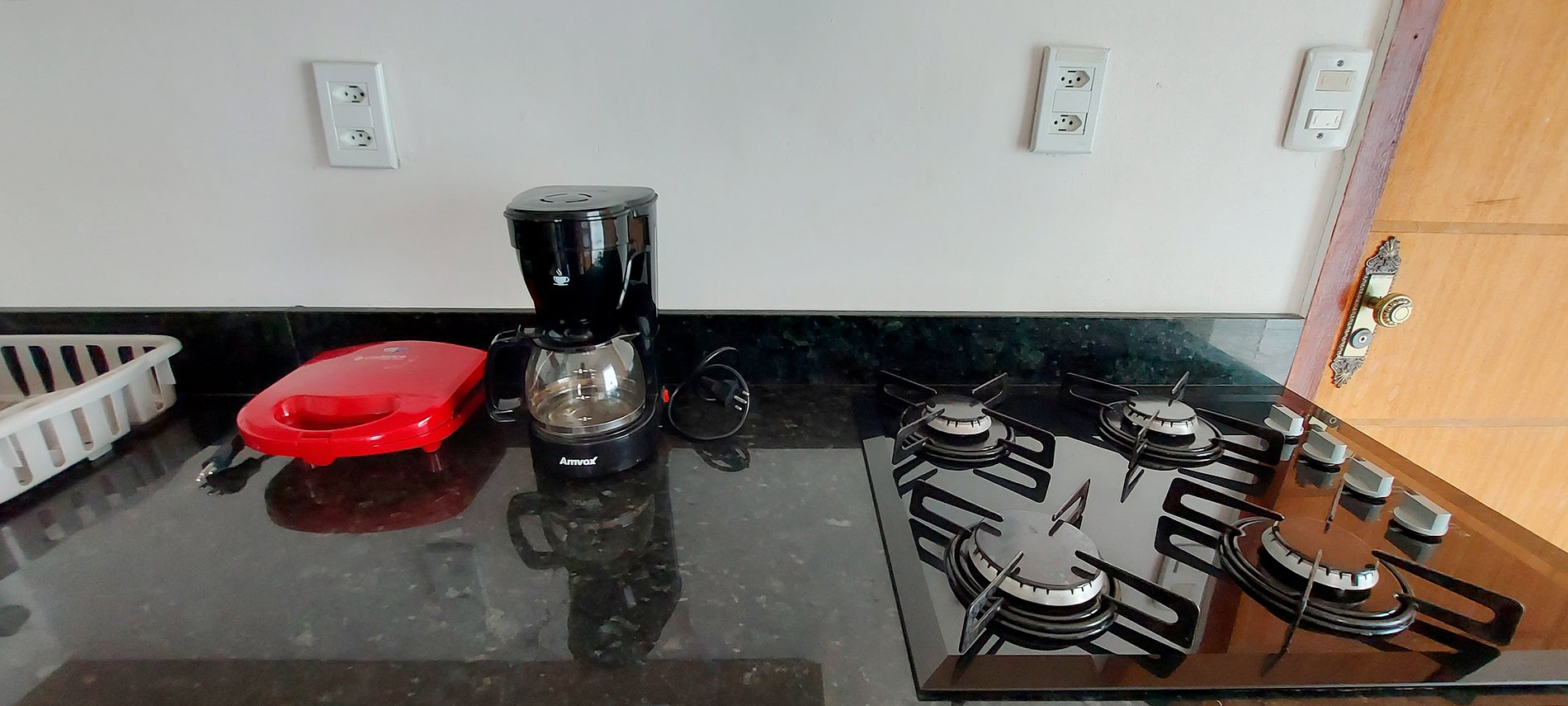 - Ar condicionado split, smart TV, cooktop, microondas, liquidificador, ventilador de teto