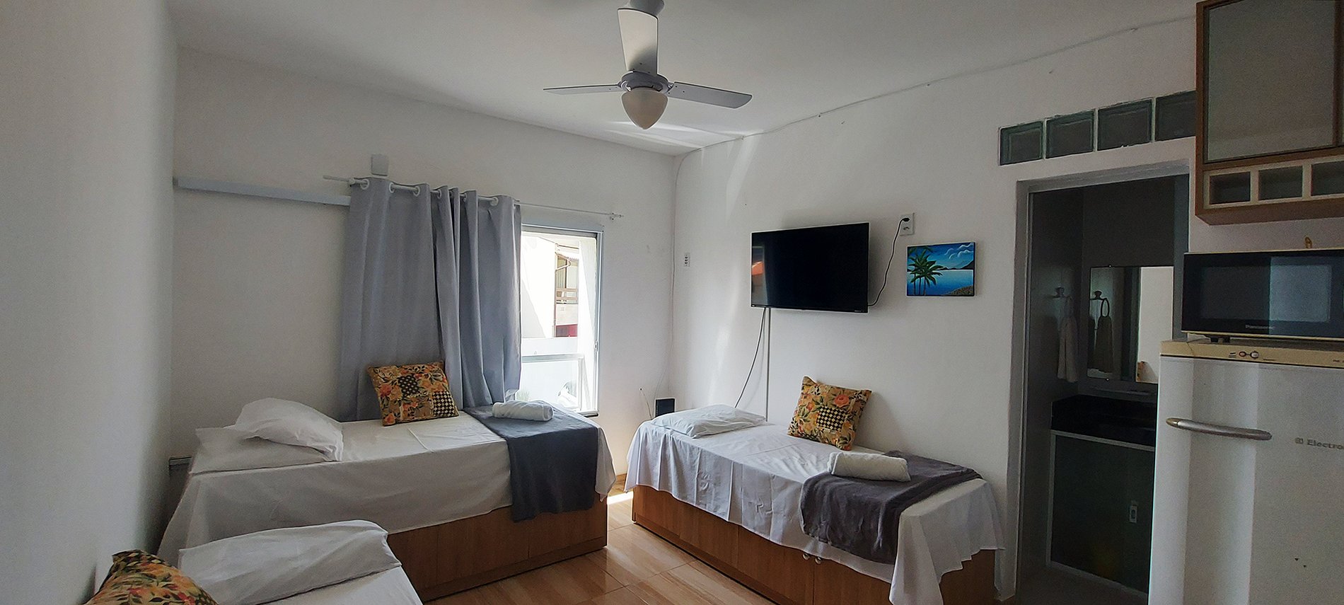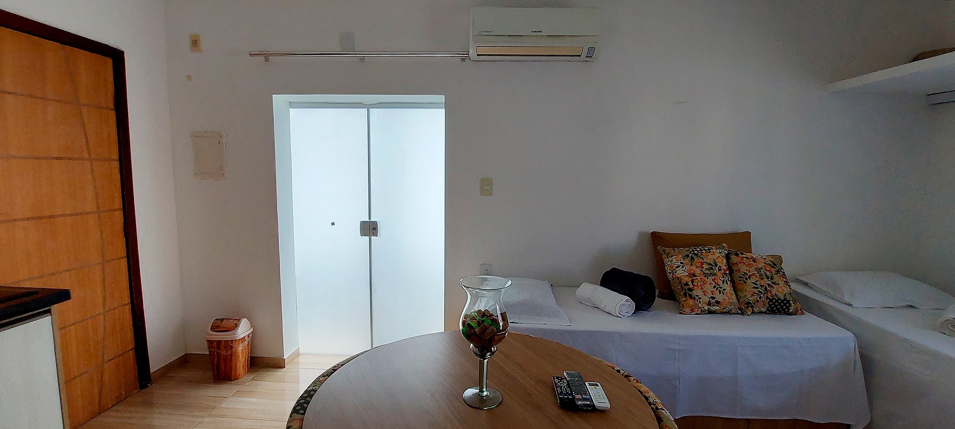 - Ar condicionado split, smart TV, cooktop, microondas, liquidificador, ventilador de teto