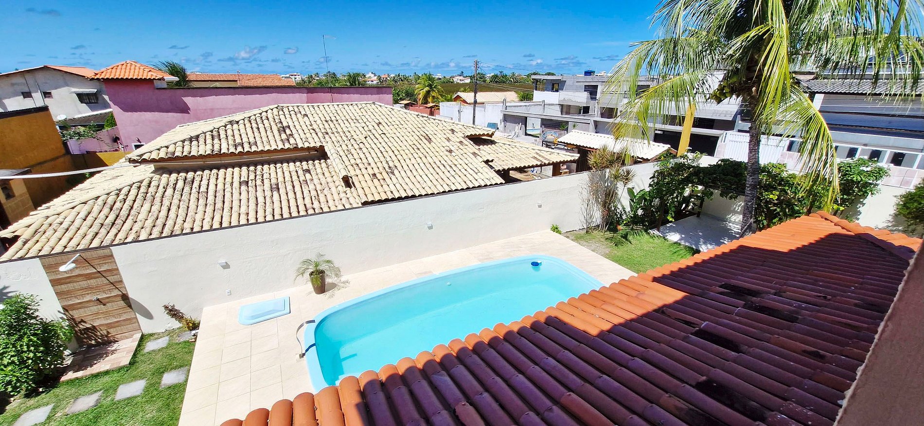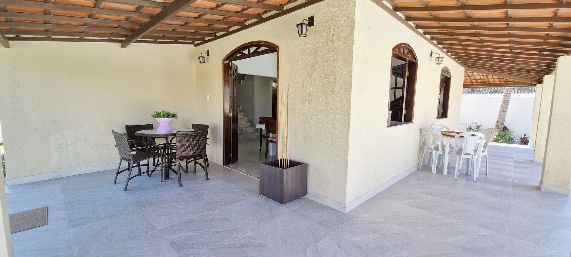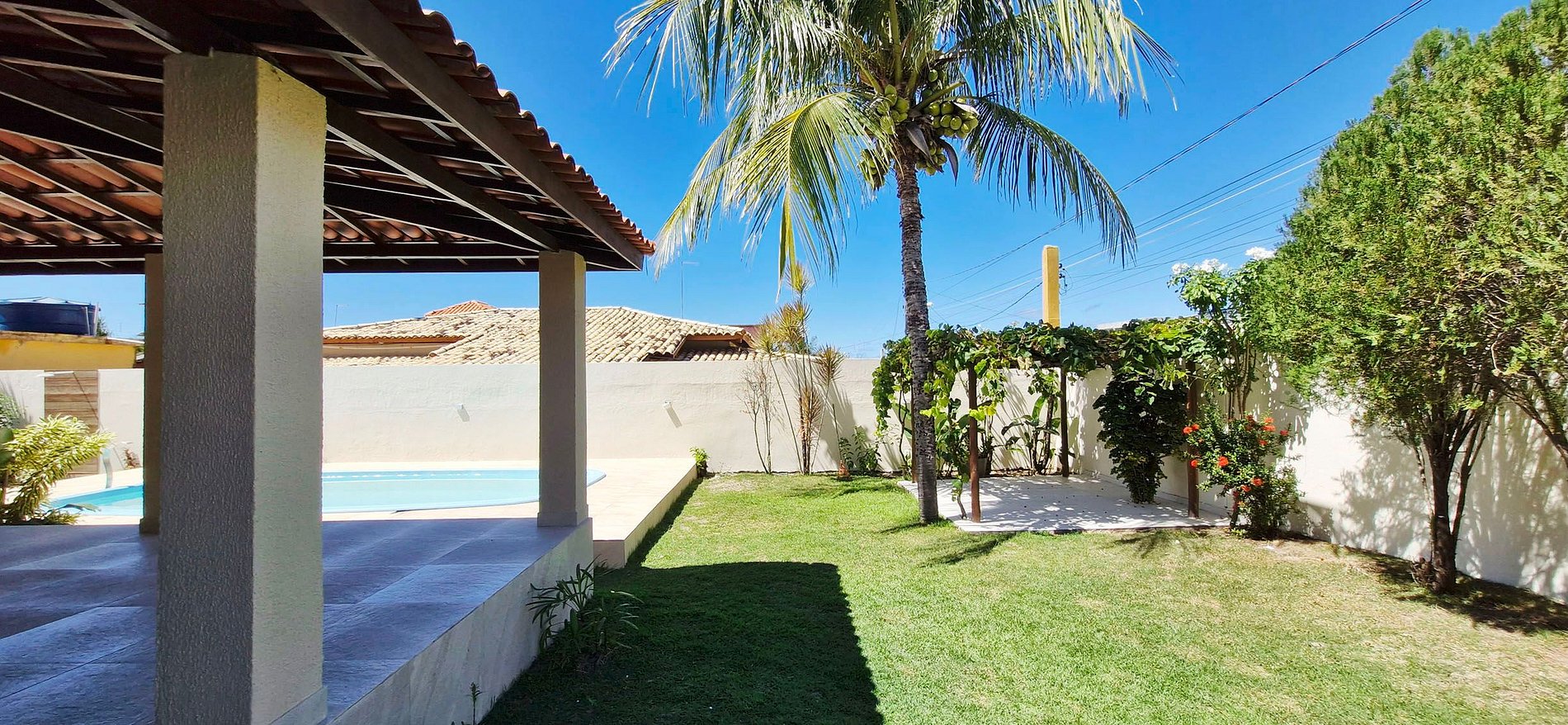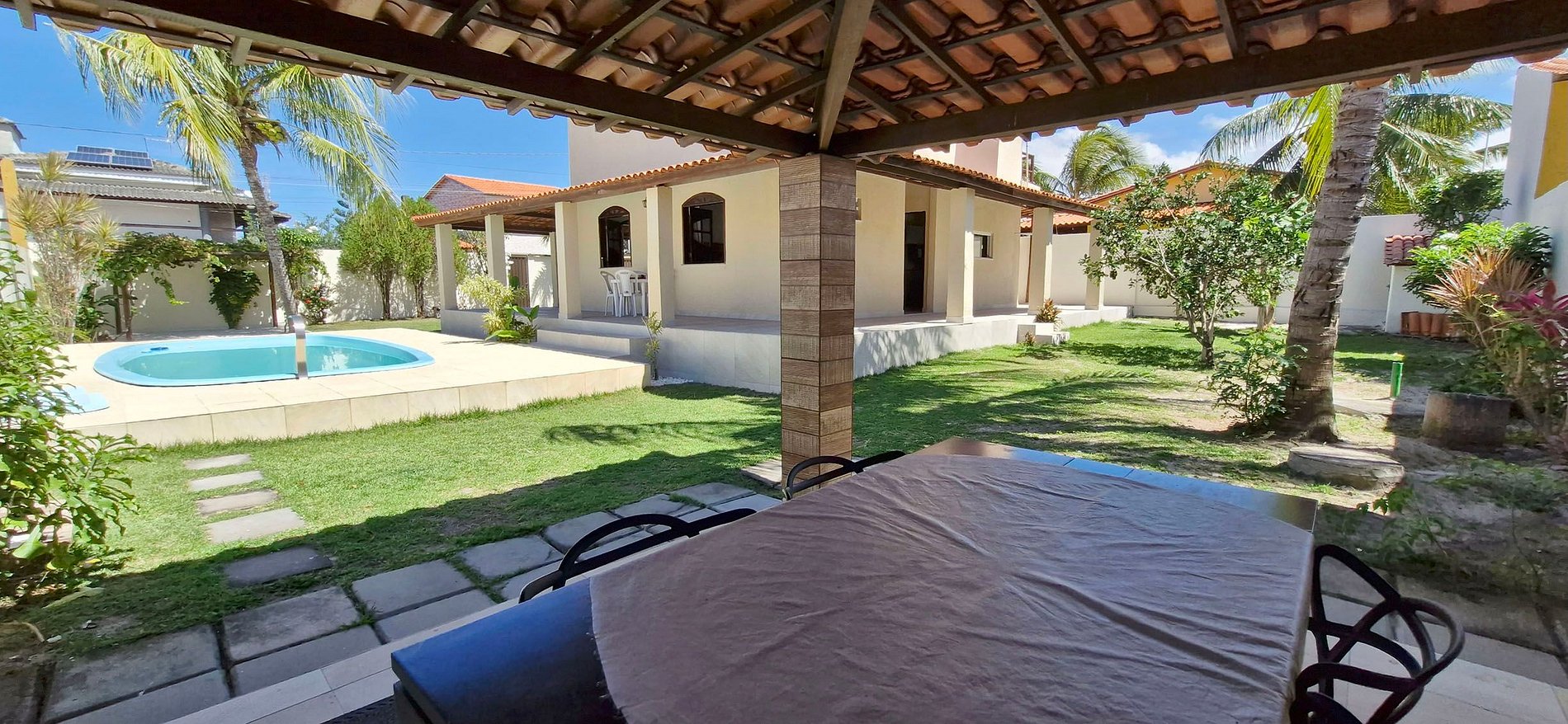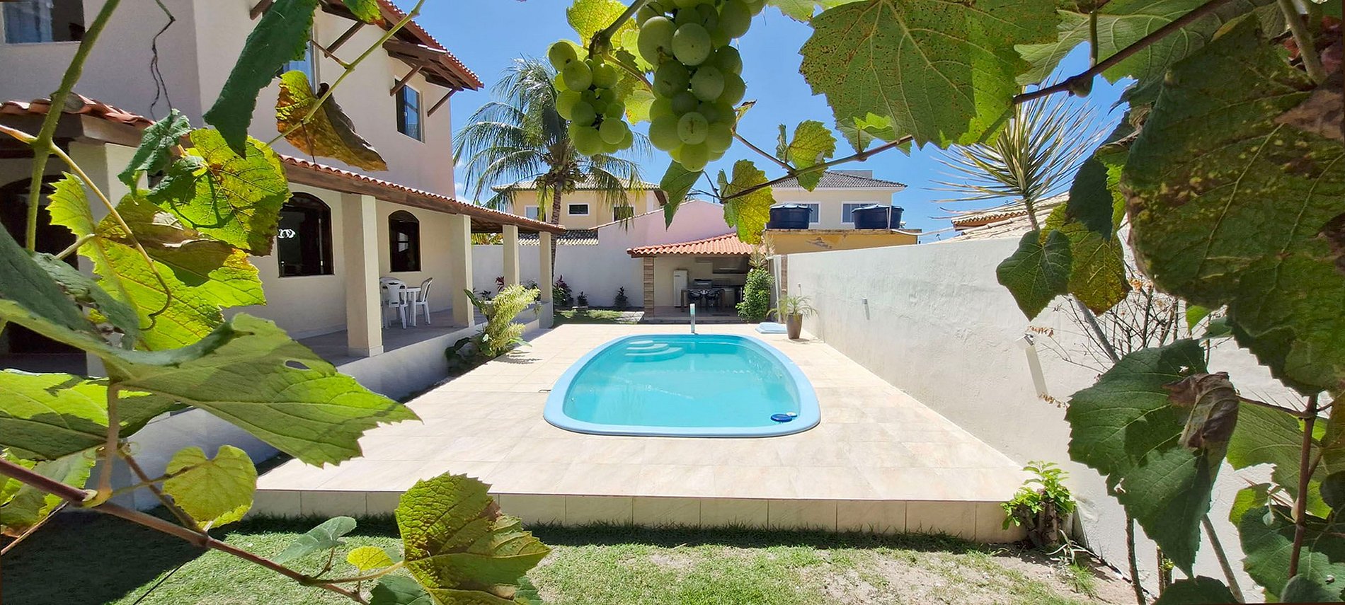 Linda casa com 5 quartos (sendo 2 suítes) em condomínio fechado em Jauá. Capacidade máxima de 10 pessoas (incluindo as crianças). Jardim amplo com um pergolado coberto de uvas, piscina com cascata e LED interna, cozinha externa com churrasqueira, WI-FI e garagem. Condomínio com portaria 24hs a cerca de 2km da praia. O local ideal para você curtir com toda a família!