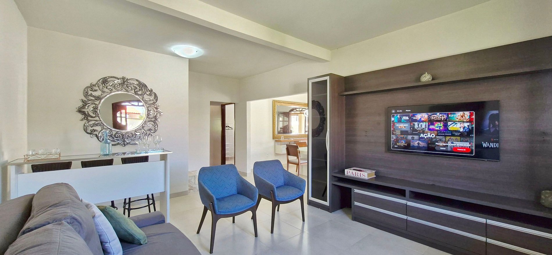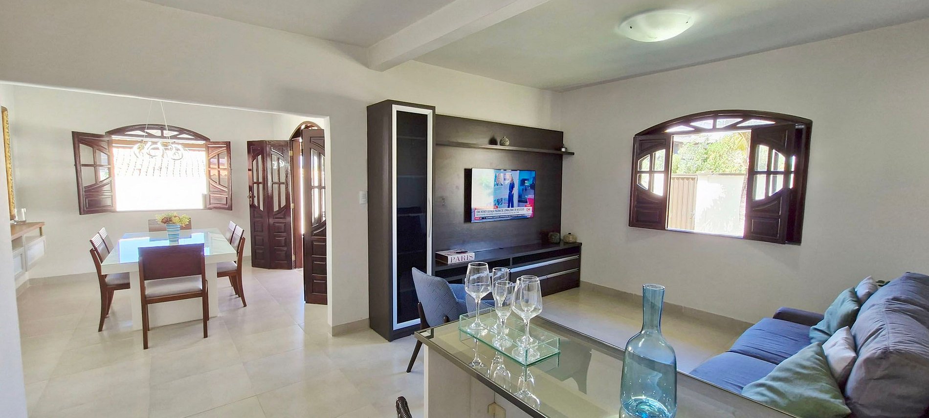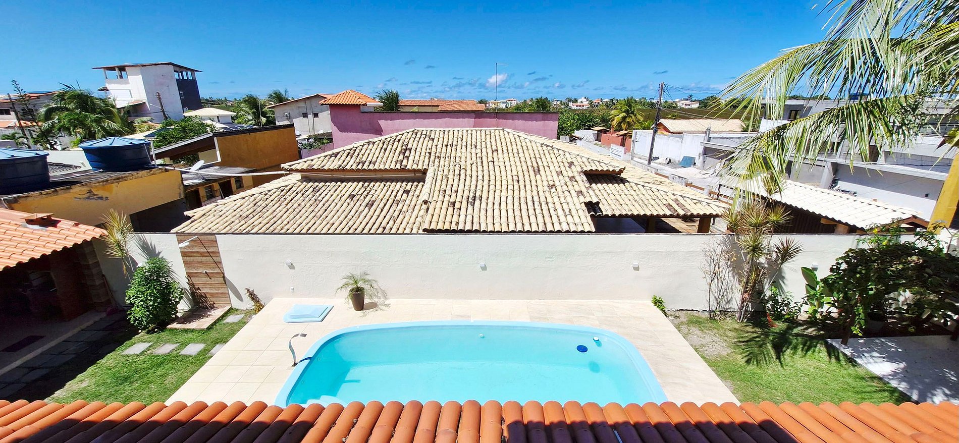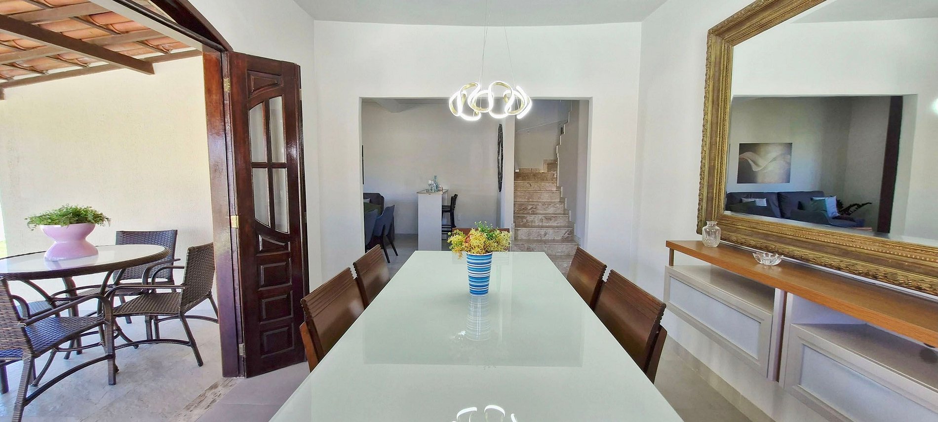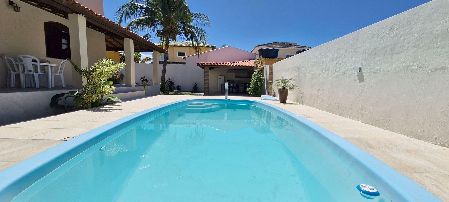 Linda casa com 5 quartos (sendo 2 suítes) em condomínio fechado em Jauá. Capacidade máxima de 10 pessoas (incluindo as crianças). Jardim amplo com um pergolado coberto de uvas, piscina com cascata e LED interna, cozinha externa com churrasqueira, WI-FI e garagem. Condomínio com portaria 24hs a cerca de 2km da praia. O local ideal para você curtir com toda a família!