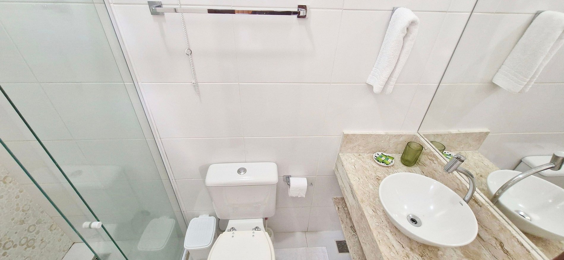 • Nenhum resíduo sólido pode ser descarregado no vaso sanitário (incluindo papel higiênico), pedimos que use a lixeira fornecida. Caso contrário, o vaso sanitário pode entupir e cobramos R$ 150 para desentupi-lo.
