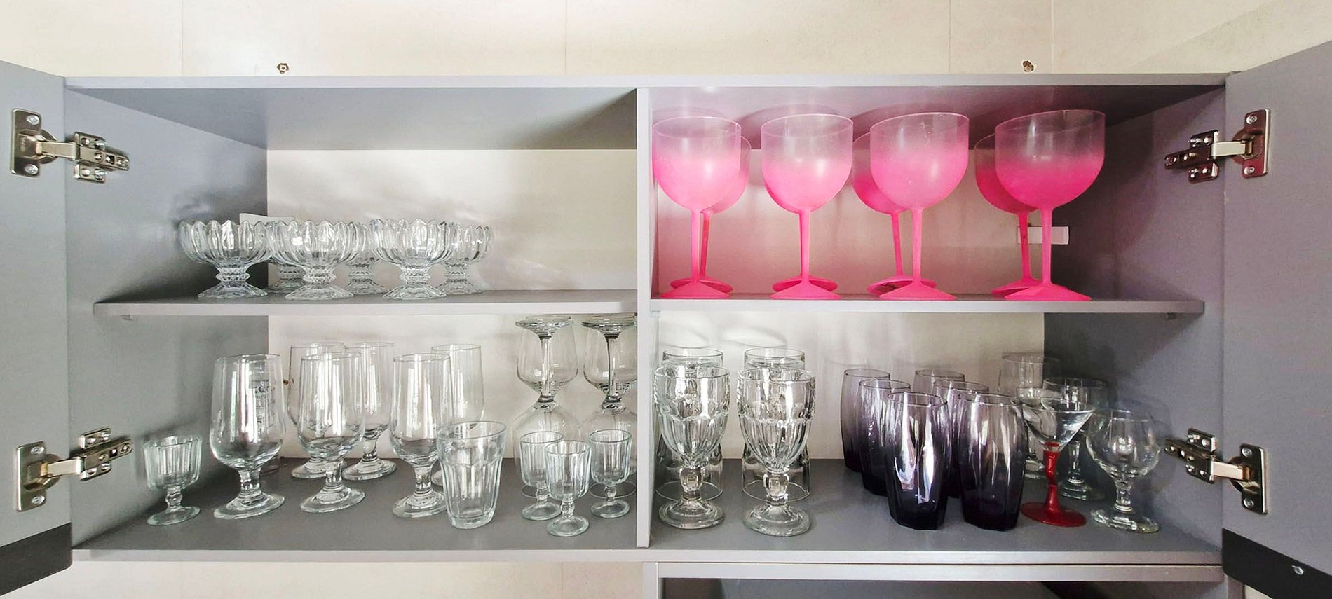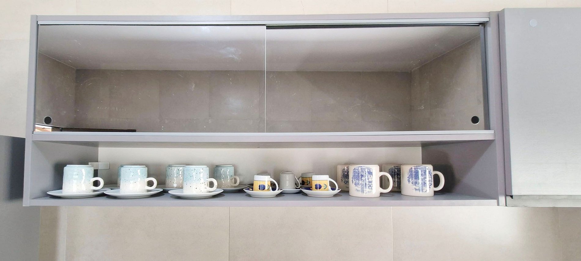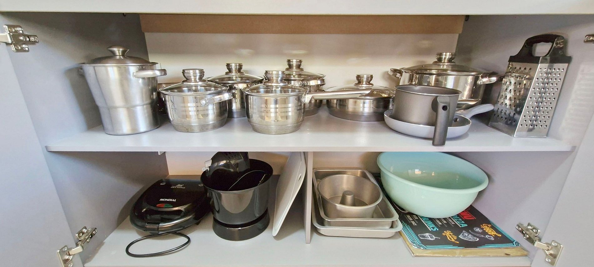 - Geladeira duplex, fogão a gás, airfryer, liquidificador, filtro de água, cafeteira elétrica, microondas, panelas, potes, copos, taças, talheres e itens básicos de cozinha